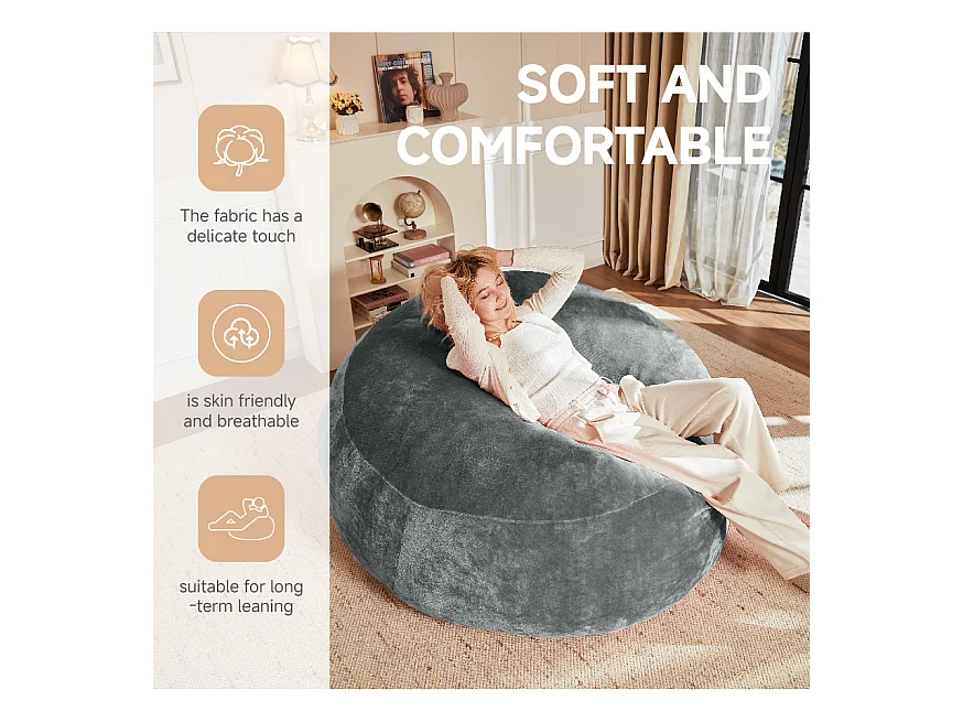 Sacs de siège géant pour adulte, design ergonomique et ultra-confortable, mousse, gris foncé (150x150x60cm)