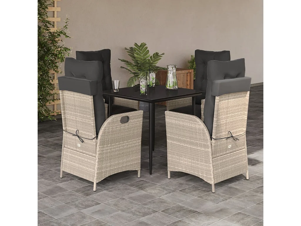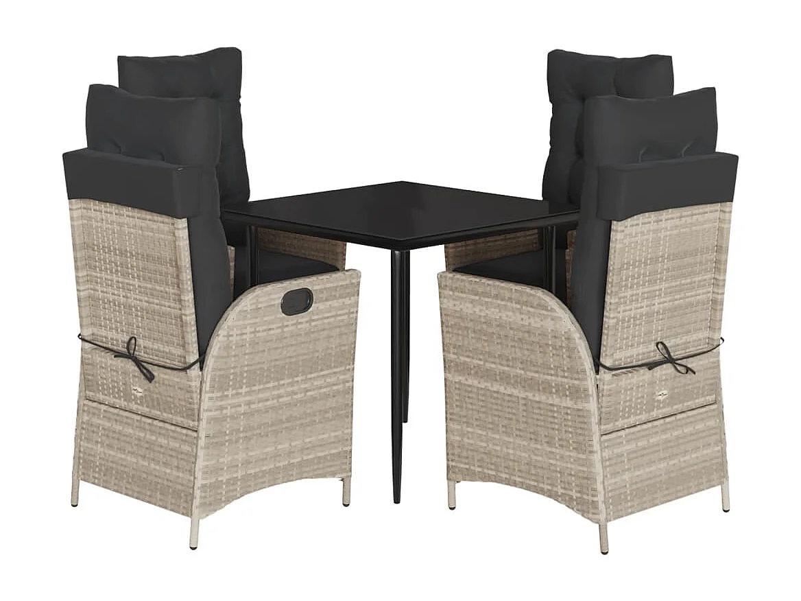Sadie Claire Ensemble à manger de jardin et coussins 5 pcs gris clair rotin
