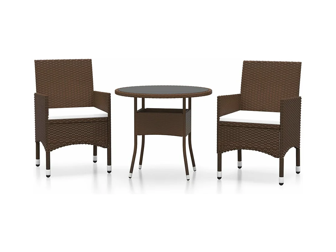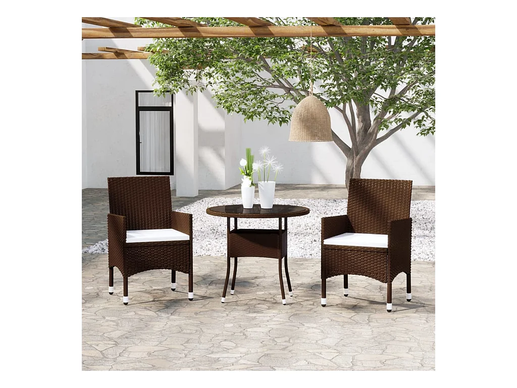 Ensemble de bistro 3 pcs avec coussins marron résine tressée GFDF63067