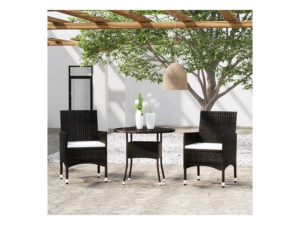 Ensemble de bistro de jardin 3 pcs coussins noir poly rotin GFDF57200