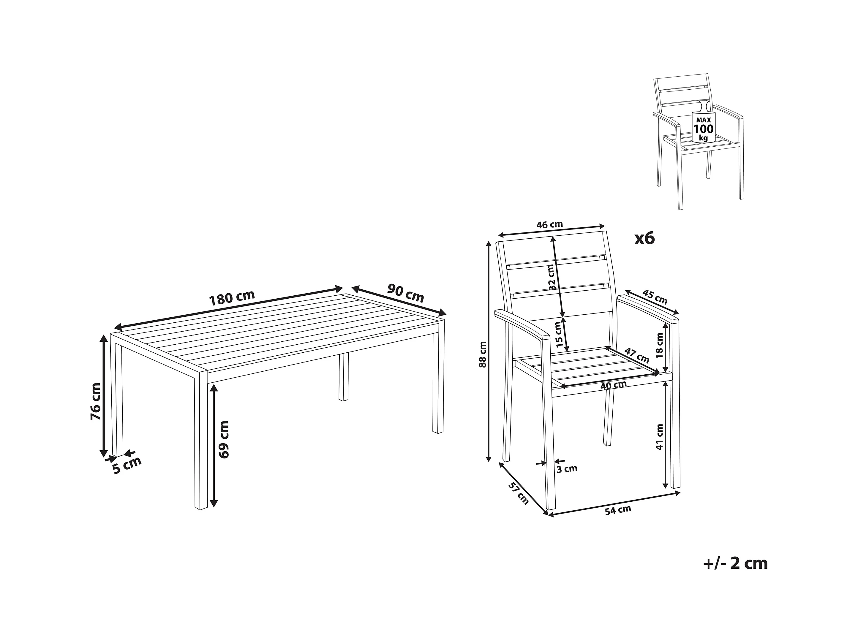 Salle à manger de jardin 6 places SCANIA Acacia Noir