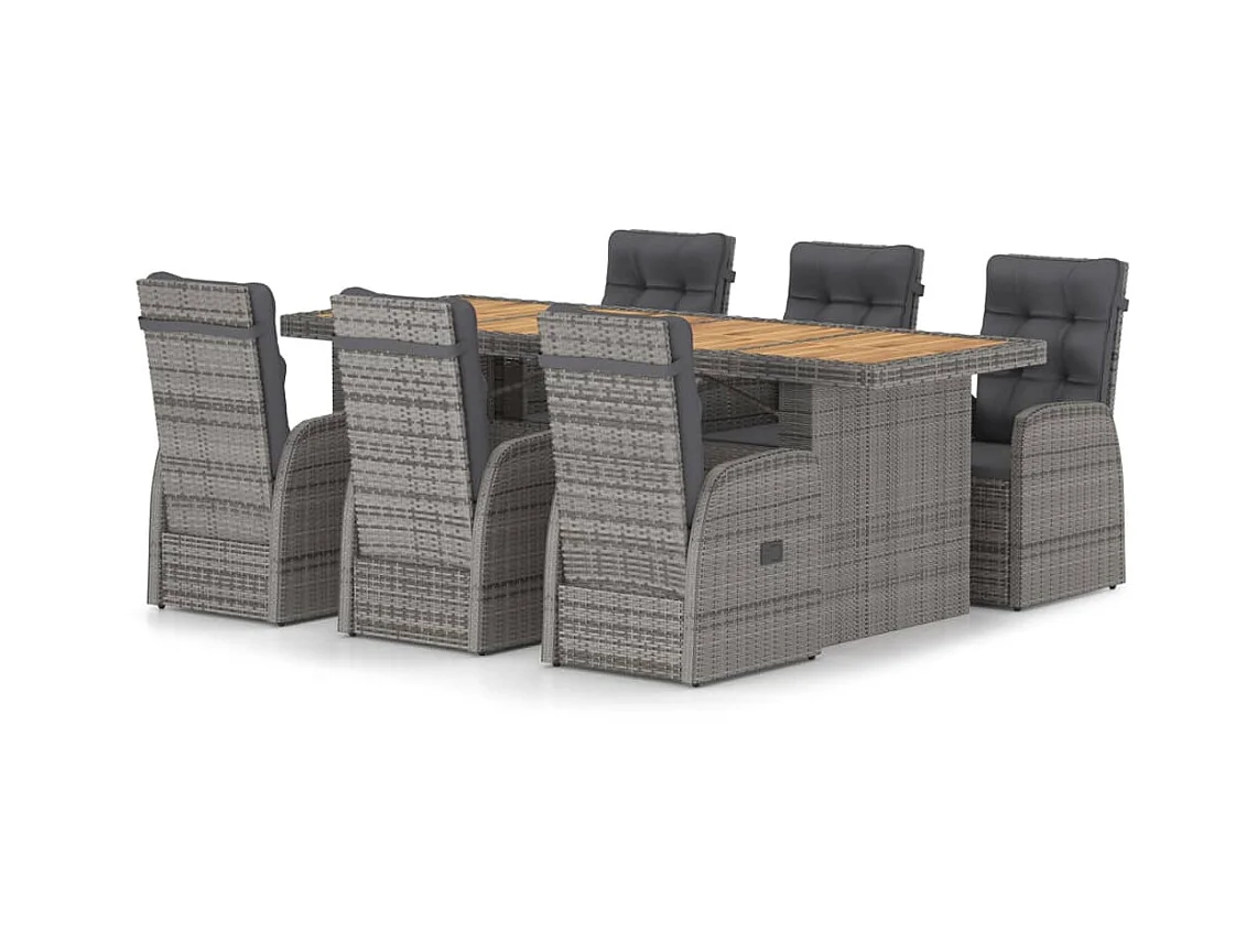 Salle à manger de jardin 7 pcs avec coussins Résine tressée Gris GFDF33883