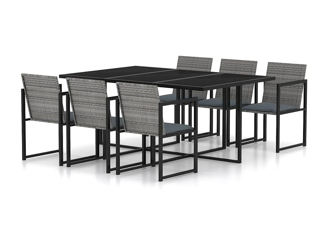 Salle à manger de jardin 7pcs et coussins Résine tressée Gris GFDF95007
