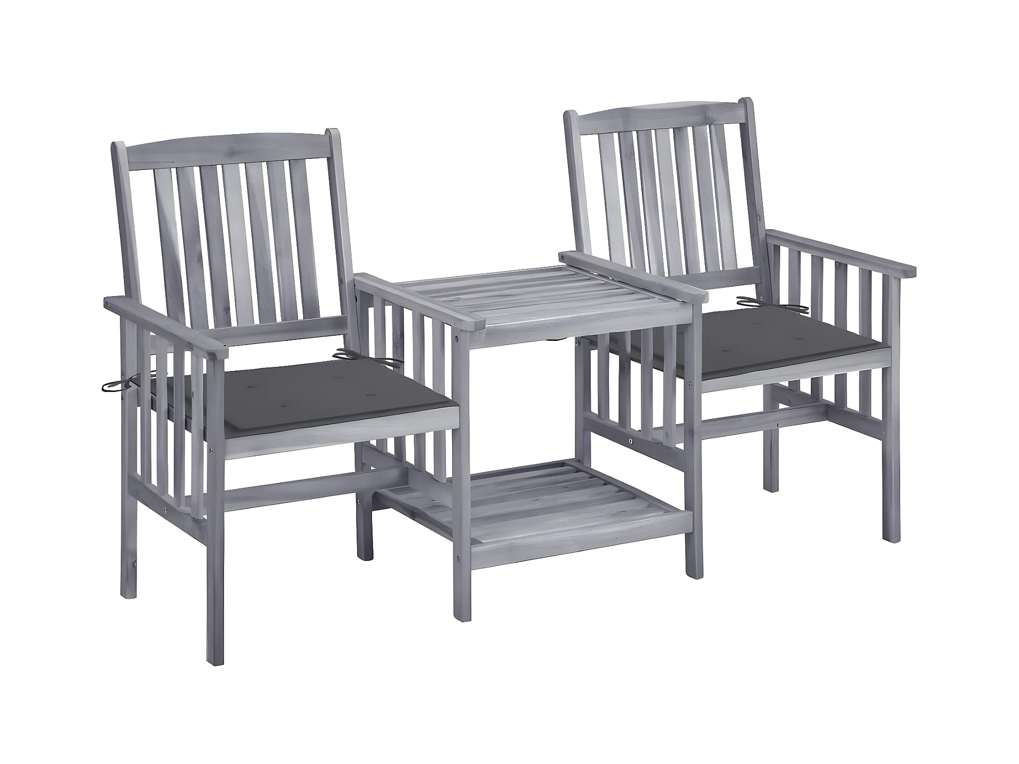 Salle à manger de jardin-Chaises de jardin avec table à thé et coussins Acacia solide GFDF83163
