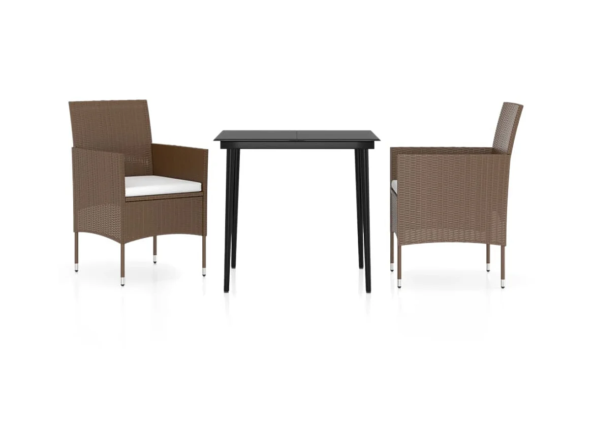 Ensemble de bistro 3 pcs avec coussins marron résine tressée GFDF61425
