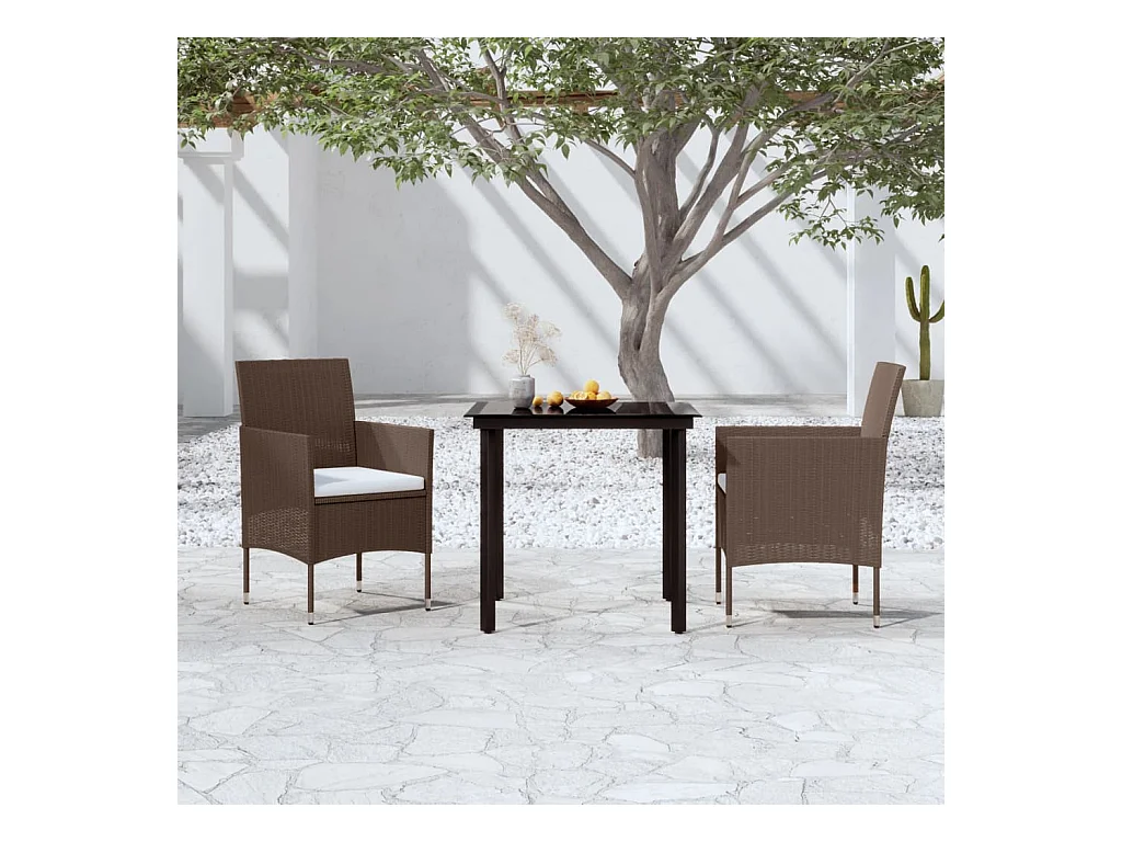Salle à manger de jardin coussins 3 pcs Marron/noir GFDF60972