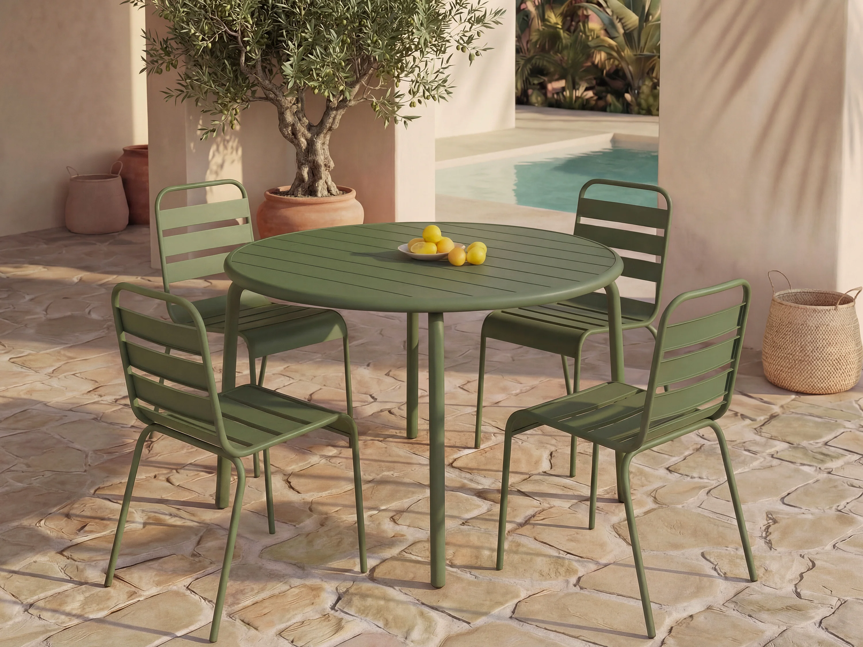 Salle à manger de jardin en métal - une table D.110 cm et 4 chaises empilables - Kaki - MIRMANDE de MYLIA