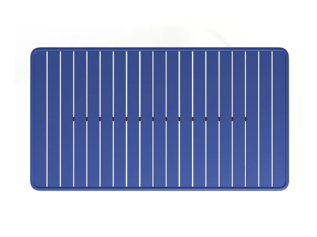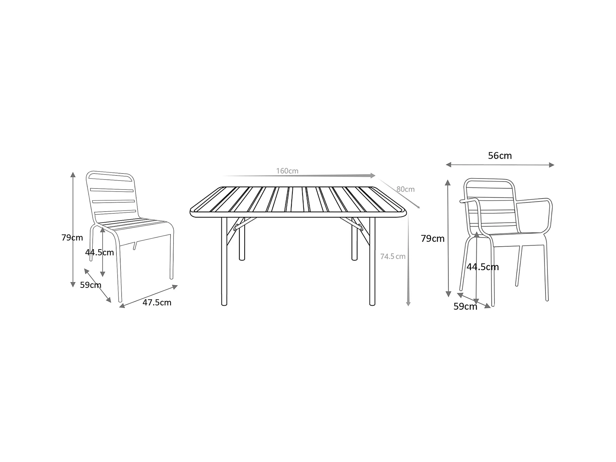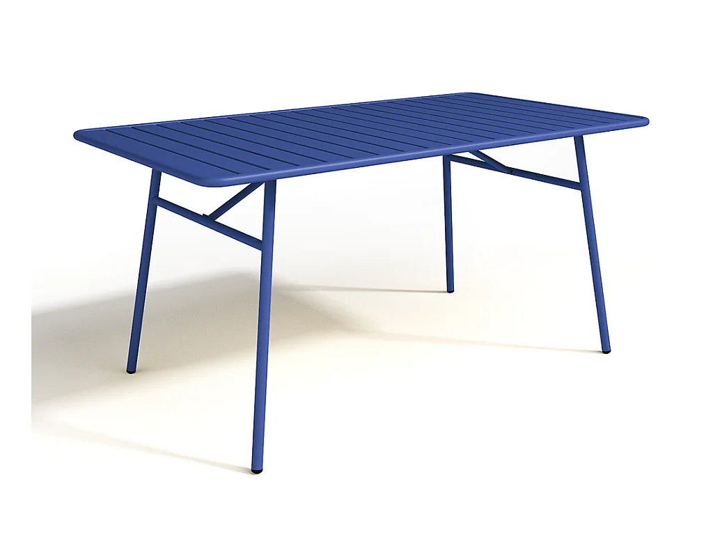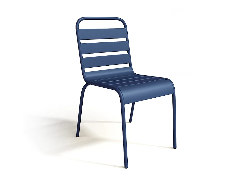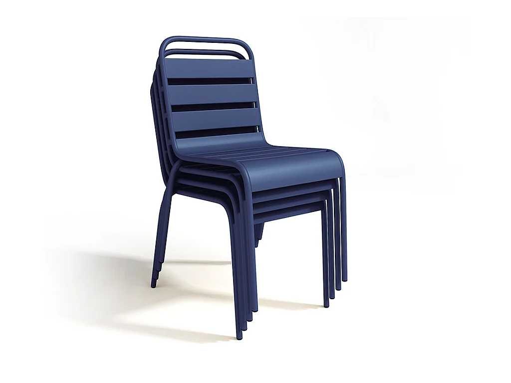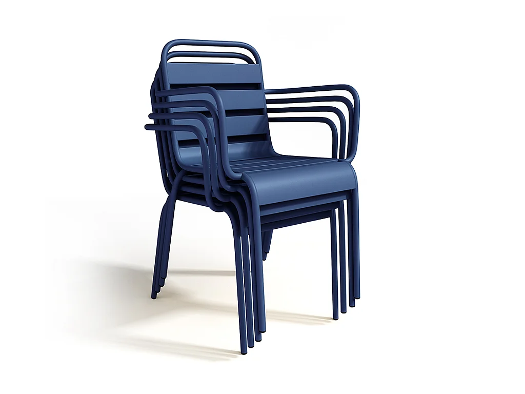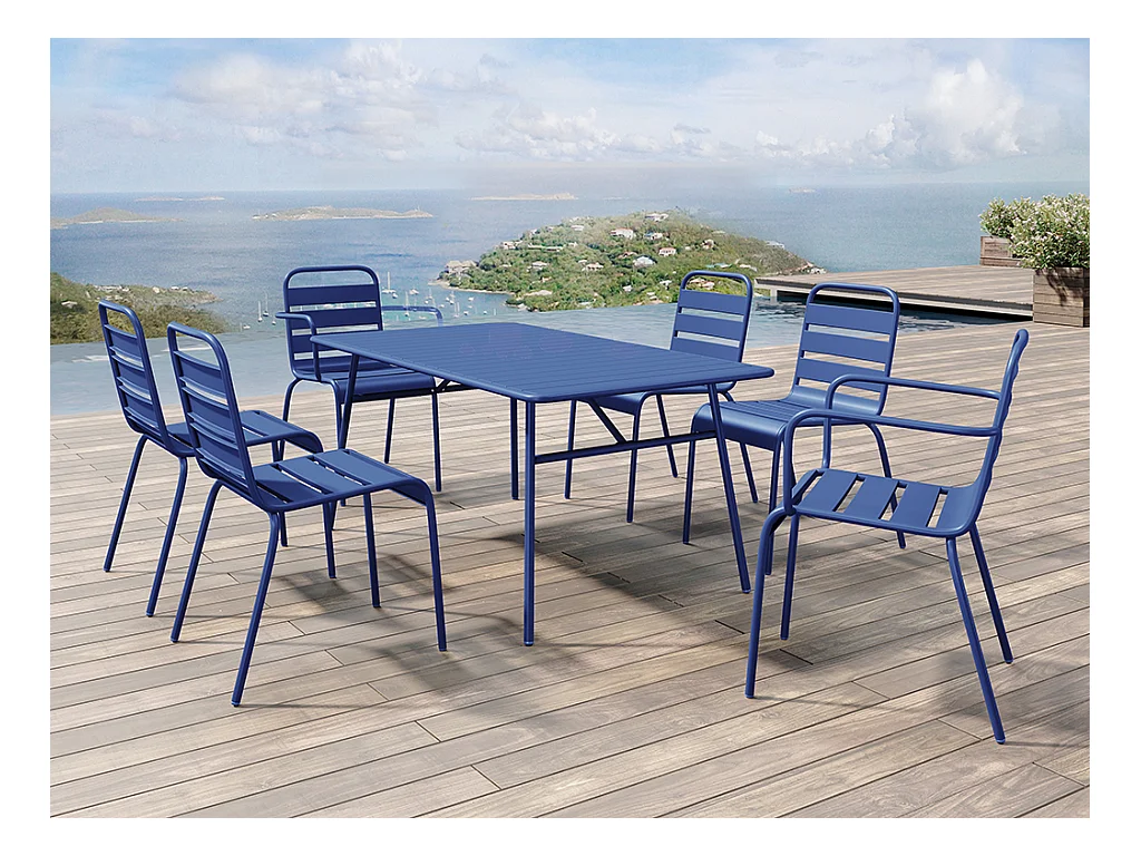 Salle à manger de jardin en métal - une table L.160 cm avec 2 fauteuils empilables et 4 chaises empilables - Bleu nuit - MIRMANDE de MYLIA