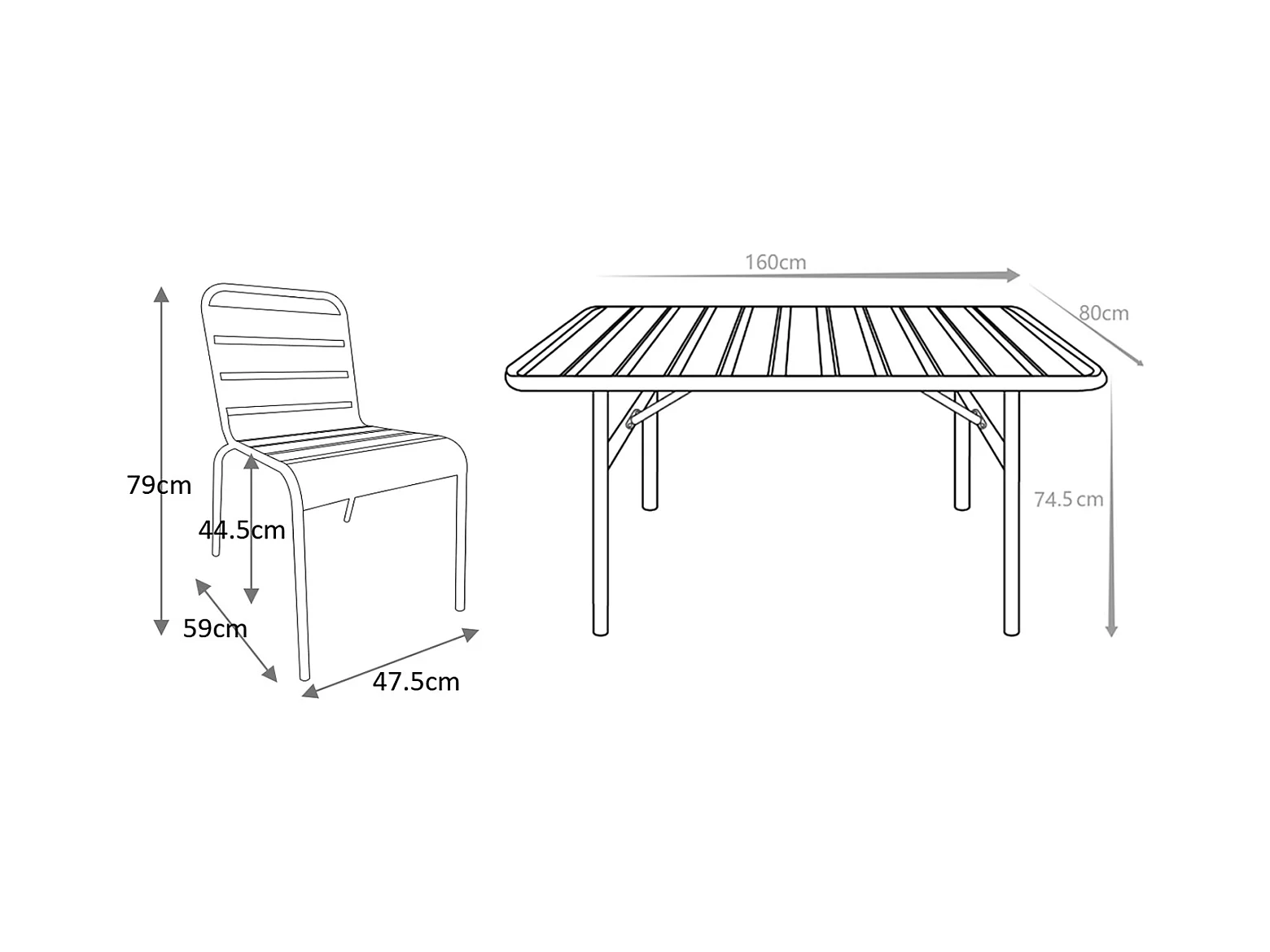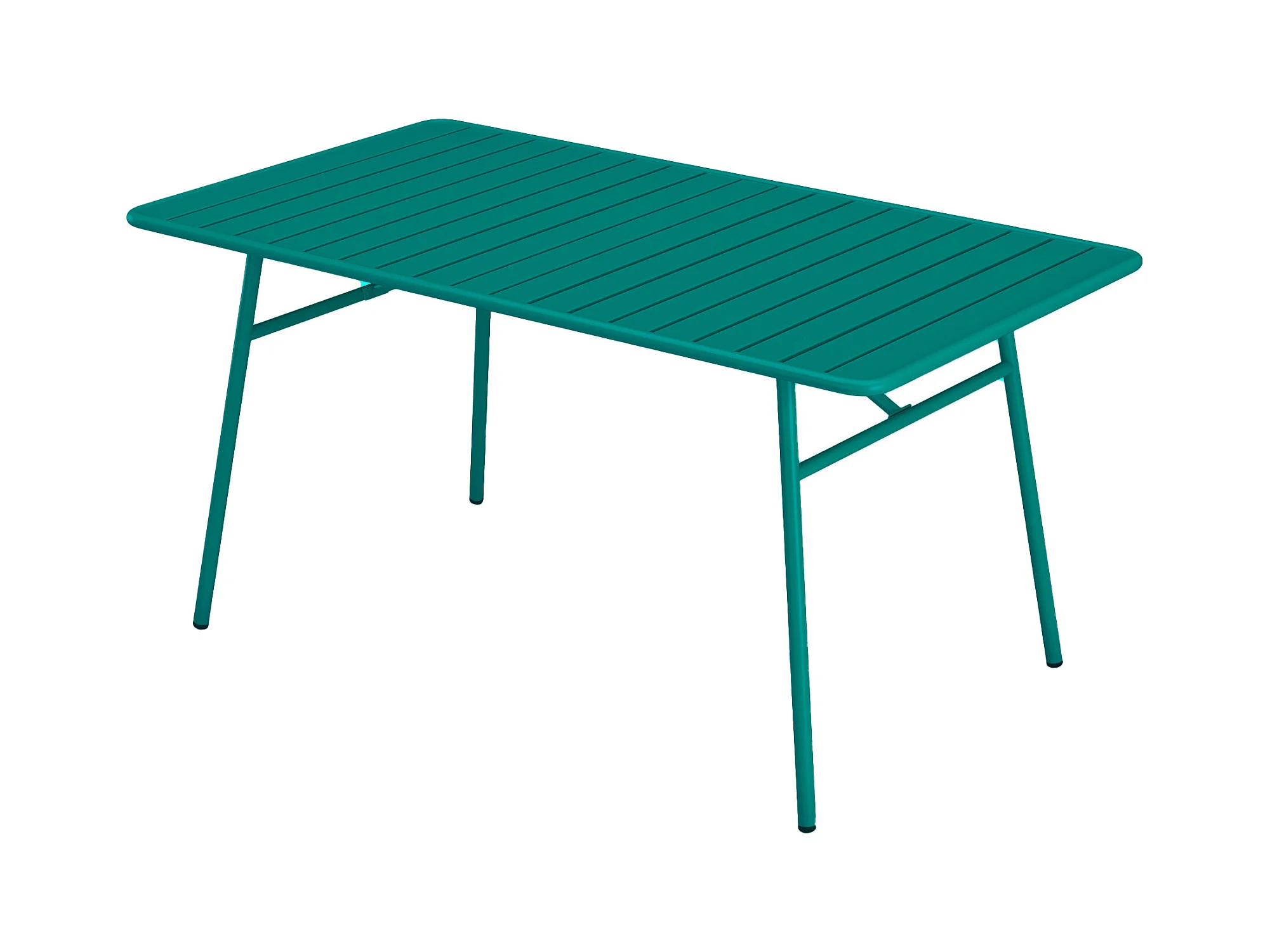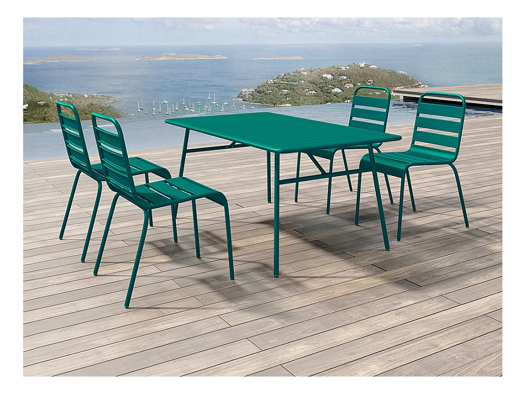 Salle à manger de jardin en métal - une table L.160 cm et 4 chaises empilables - Bleu canard - MIRMANDE de MYLIA