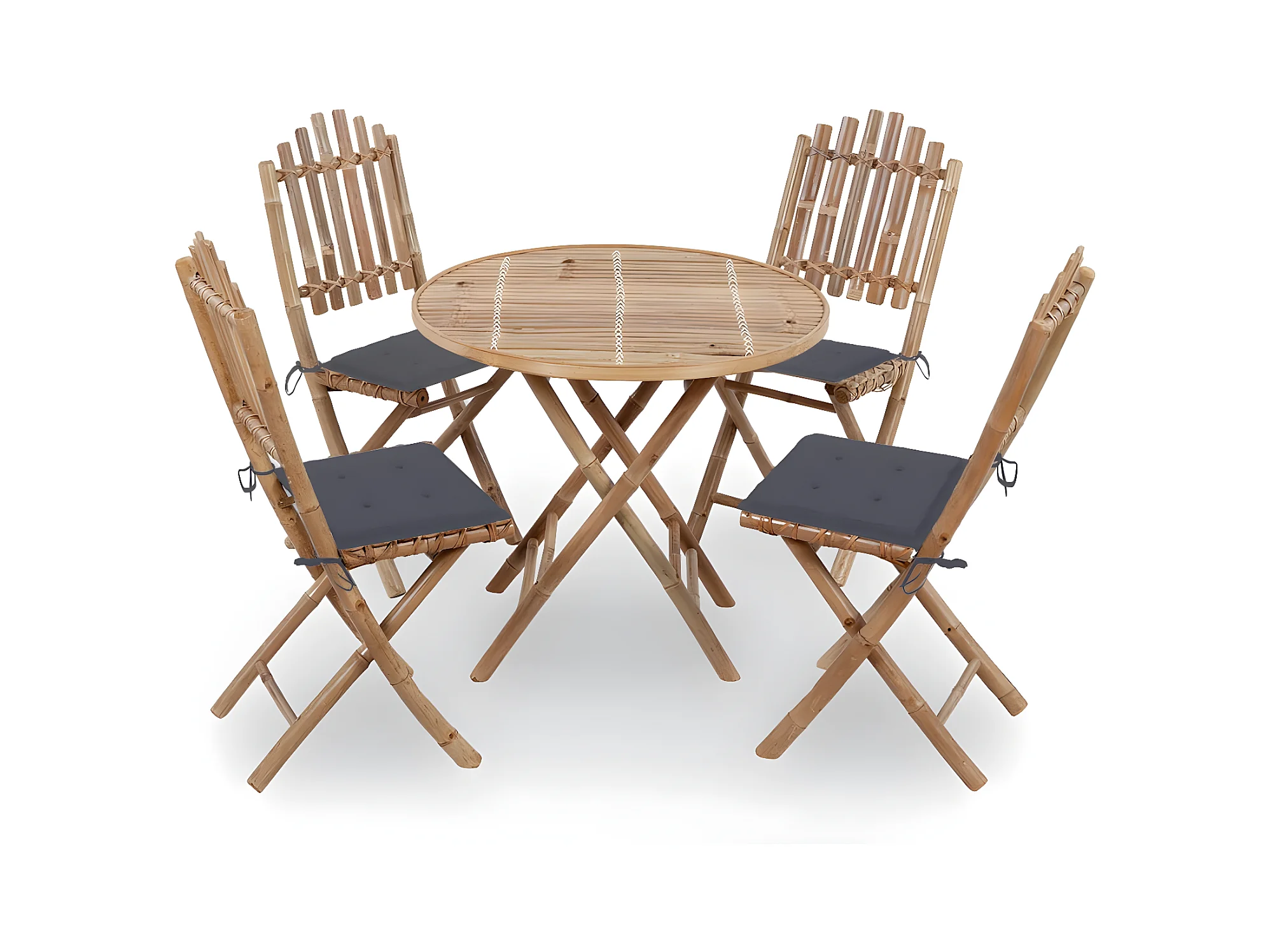 Salle à manger de jardin pliable 5 pcs avec coussins Bambou BE42847