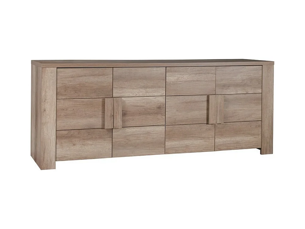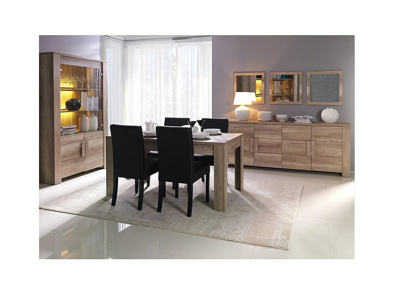 Salle à manger FARRA : buffet, vitrine, 3 miroirs et table 180cm avec LED