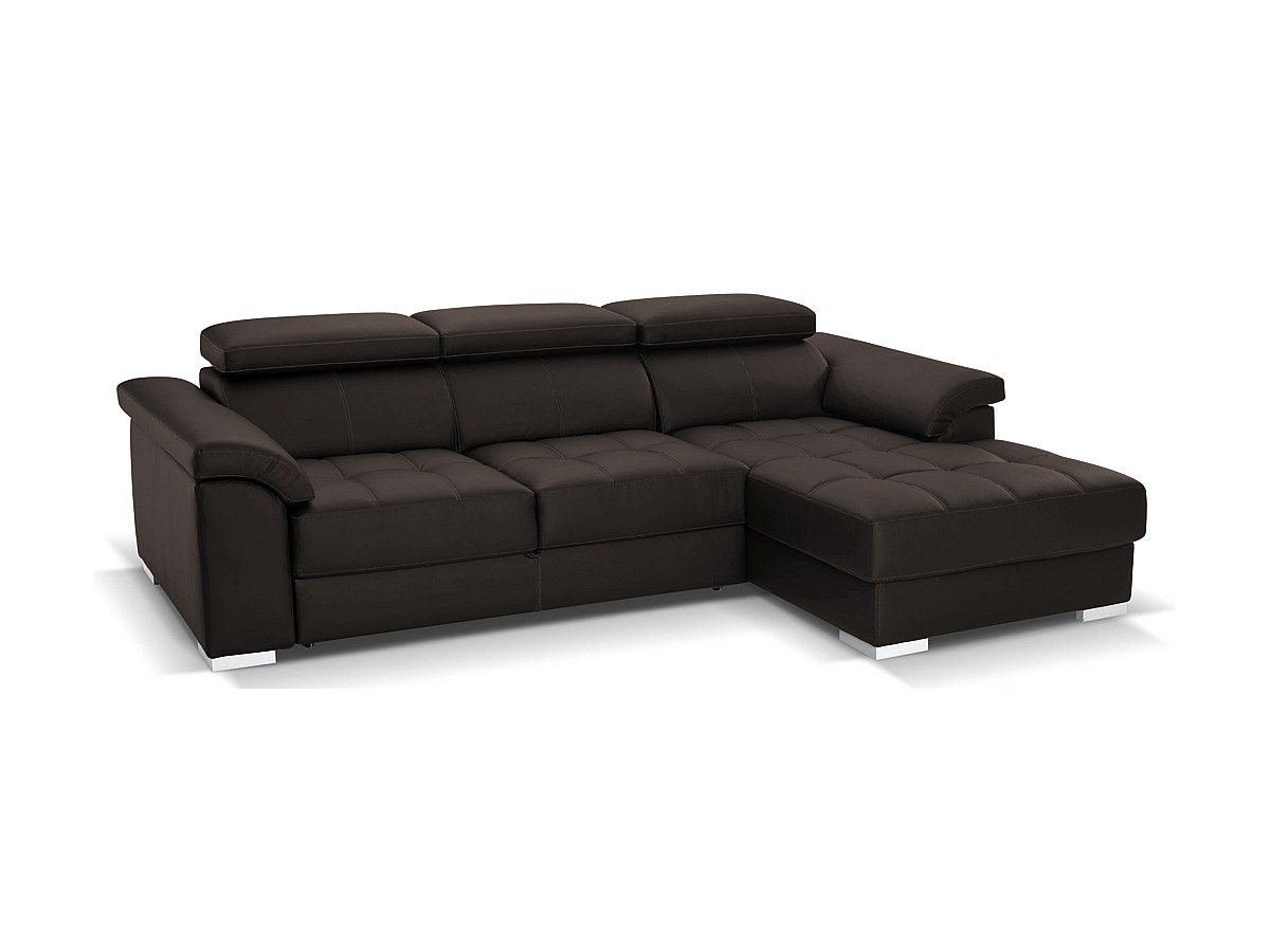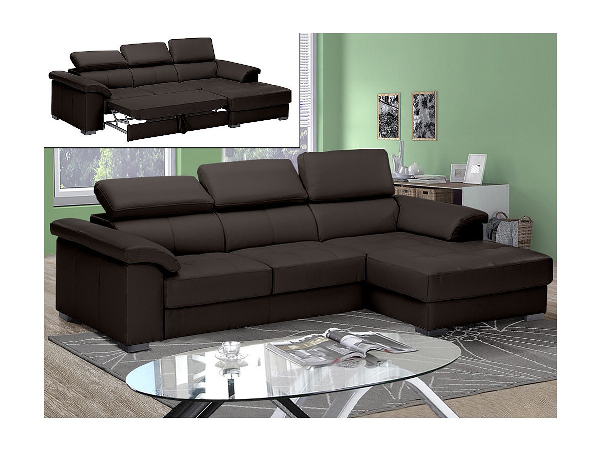 Canapé d'angle convertible cuir luxe EXPERIENCIA - Marron - Angle droit