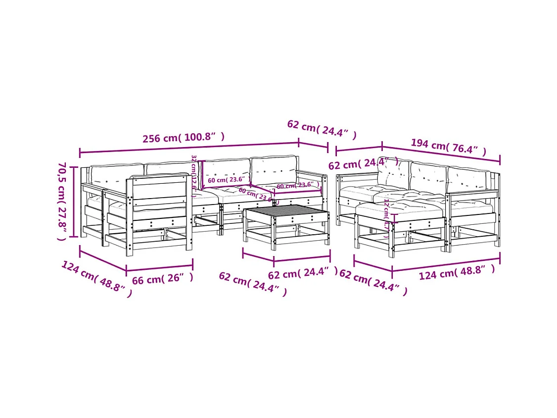 Salon de jardin 10 pcs avec coussins bois massif douglas