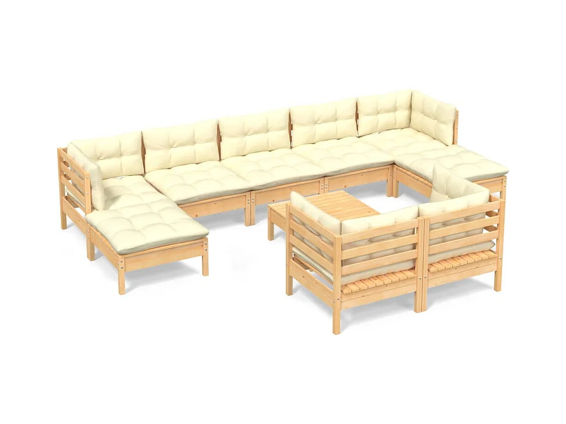 Salon de jardin 10 pcs avec coussins crème bois de pin massif