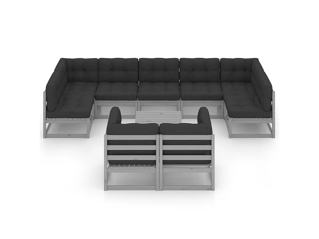 Salon de jardin 10 pcs avec coussins Gris Bois de pin massif 17