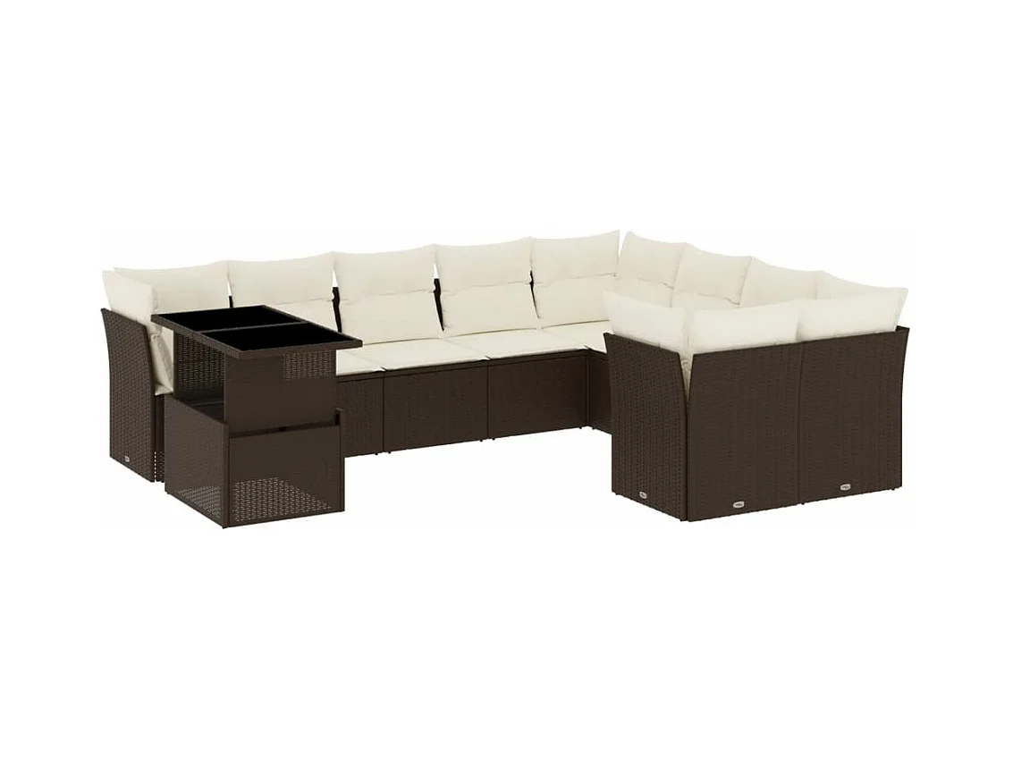 Salon de jardin 10 pcs avec coussins marron résine tressée