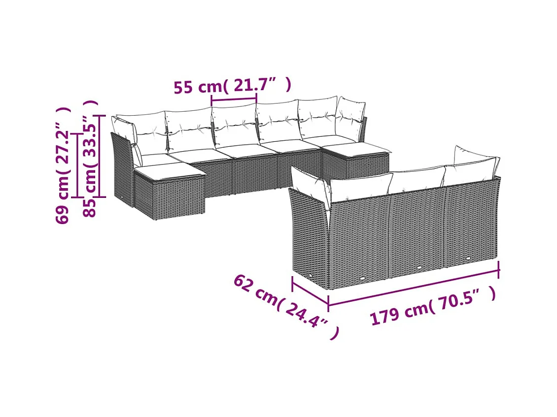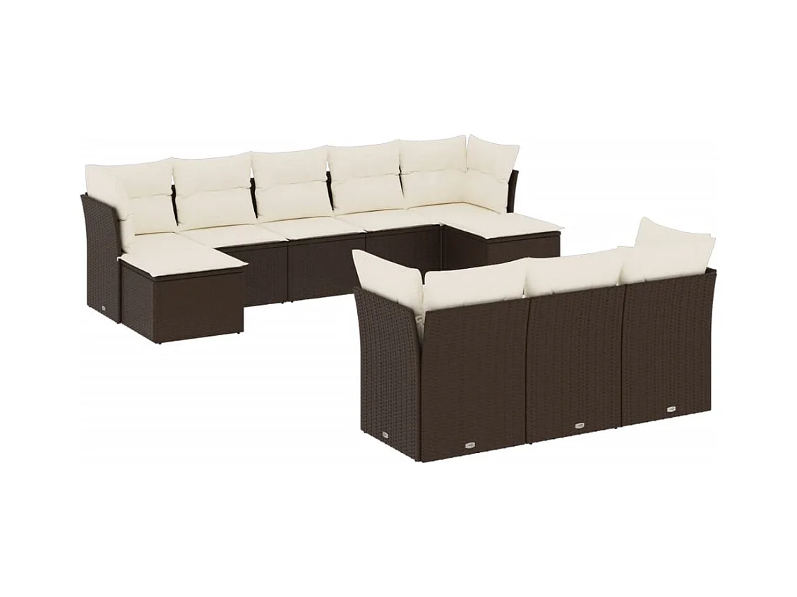 Salon de jardin 10 pcs avec coussins marron résine tressée