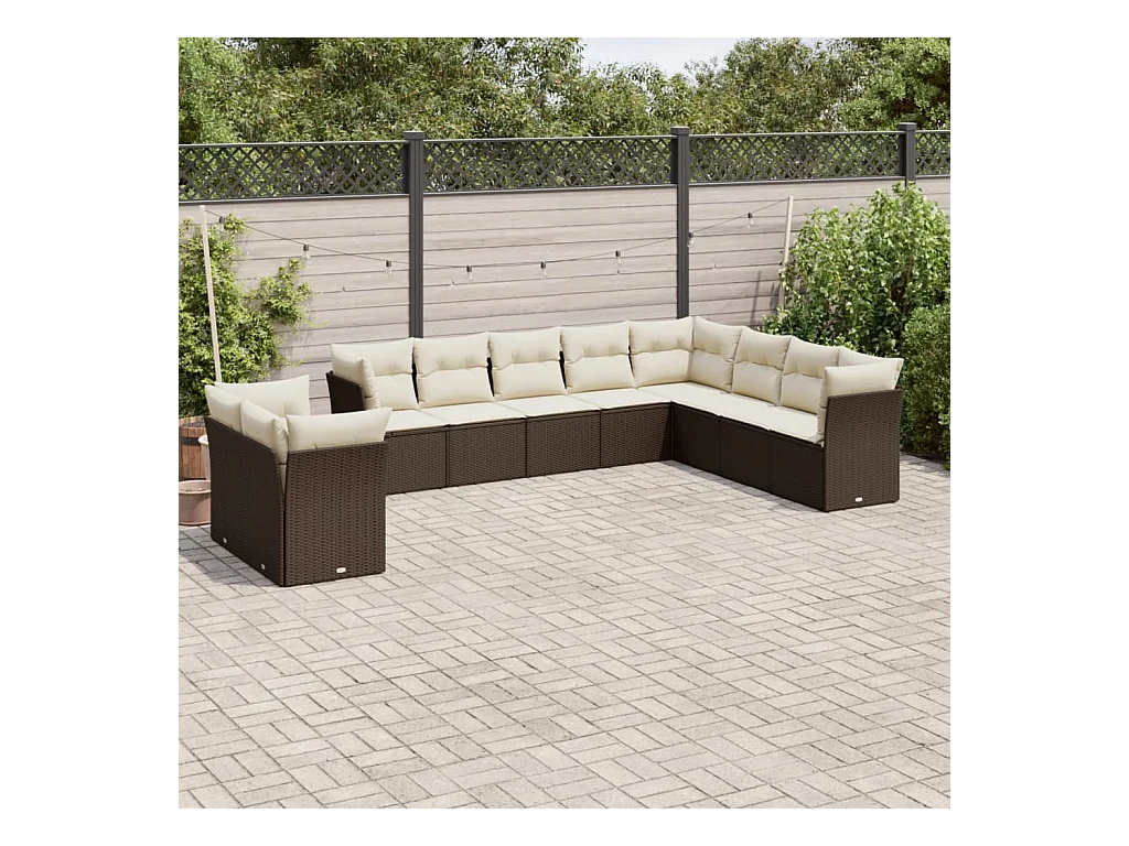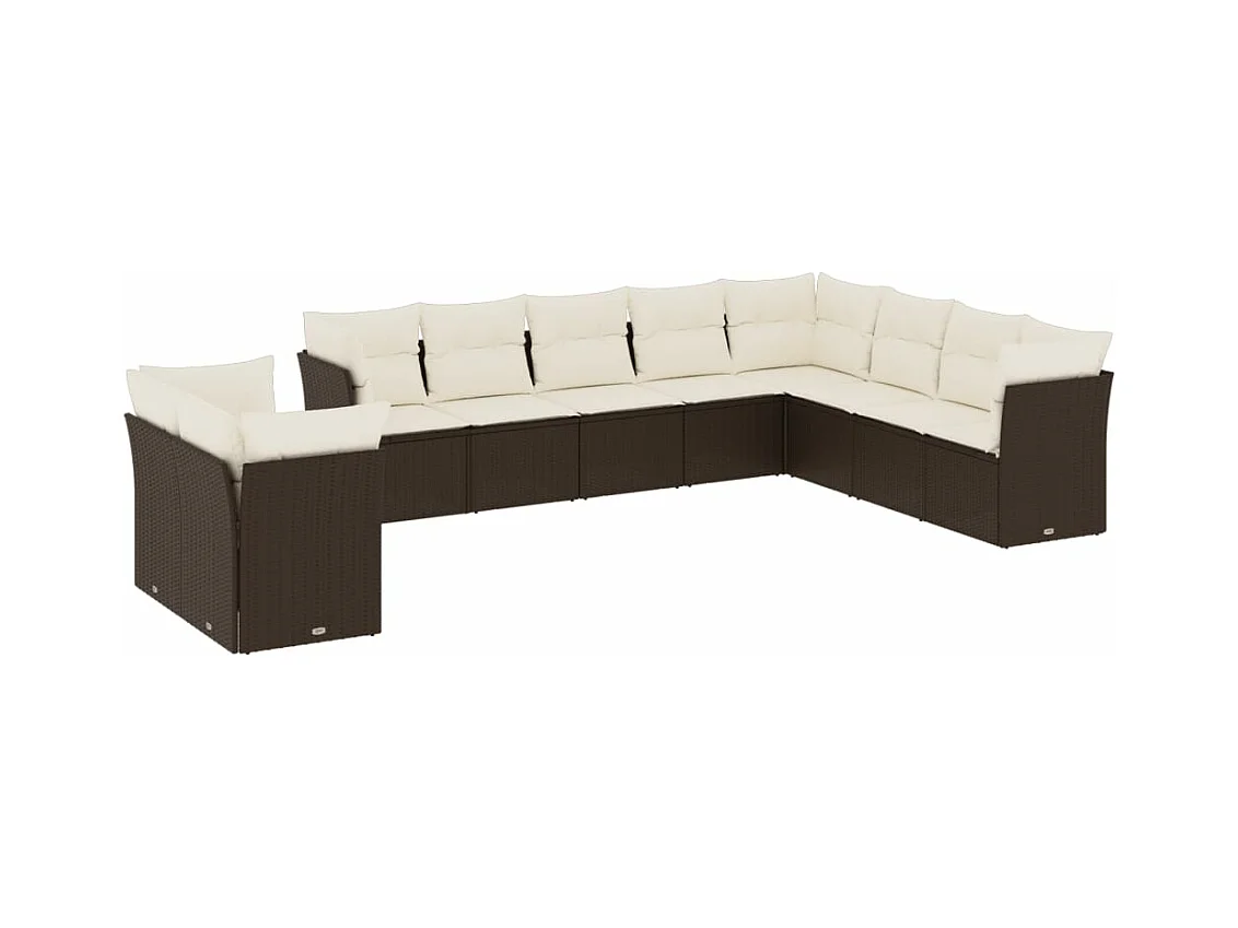 Salon de jardin 10 pcs avec coussins marron résine tressée