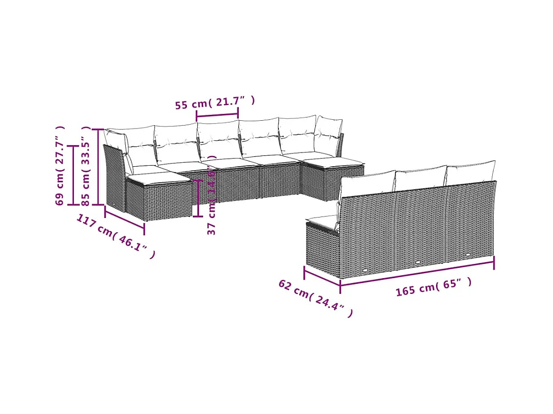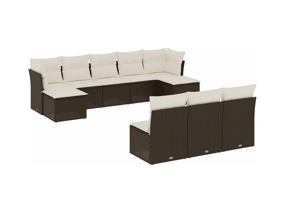 Salon de jardin 10 pcs avec coussins marron résine tressée