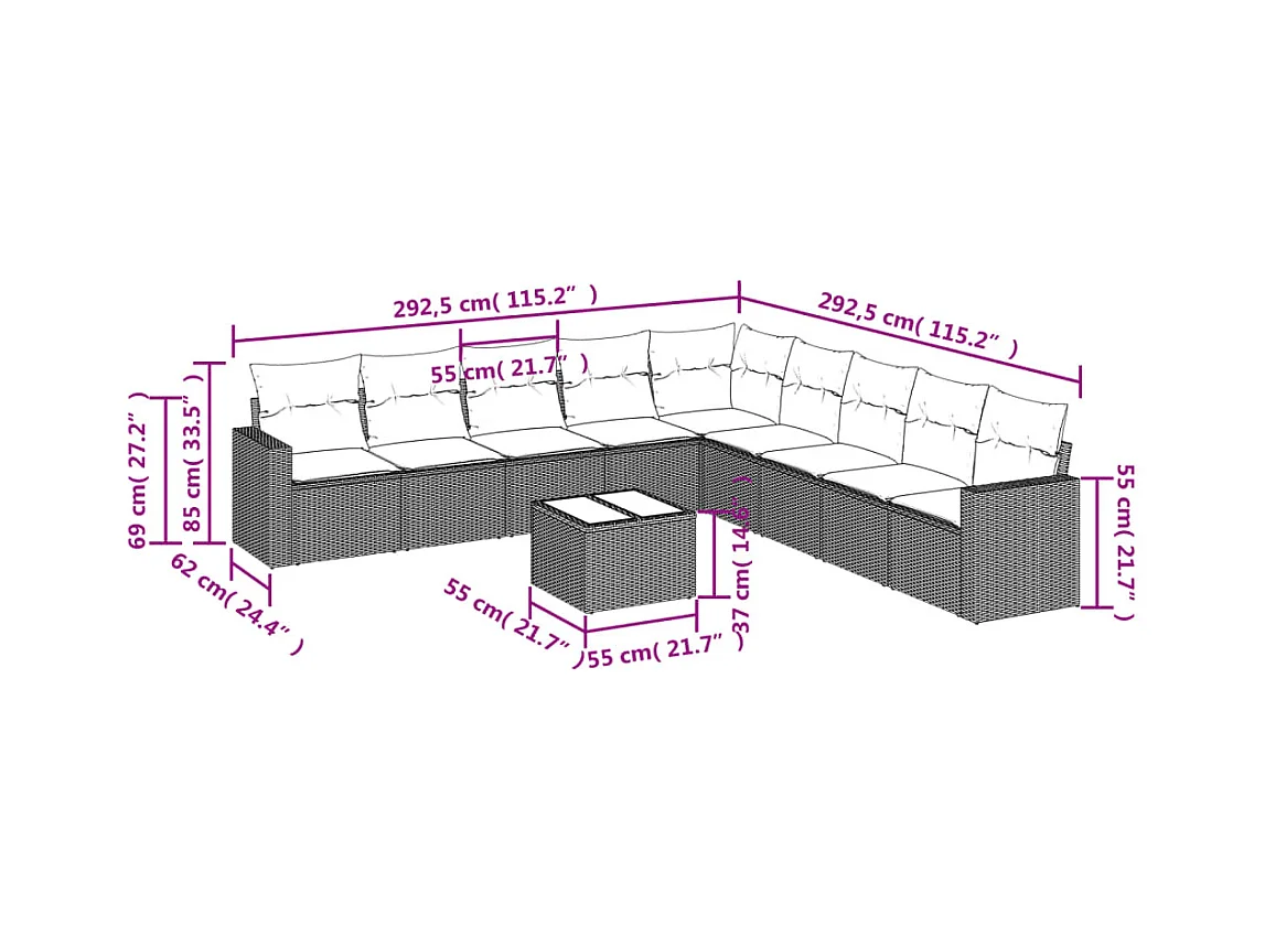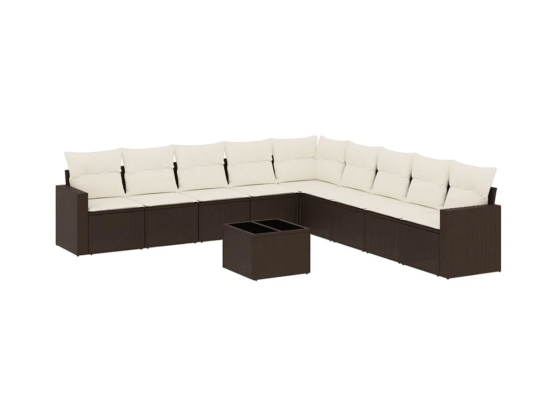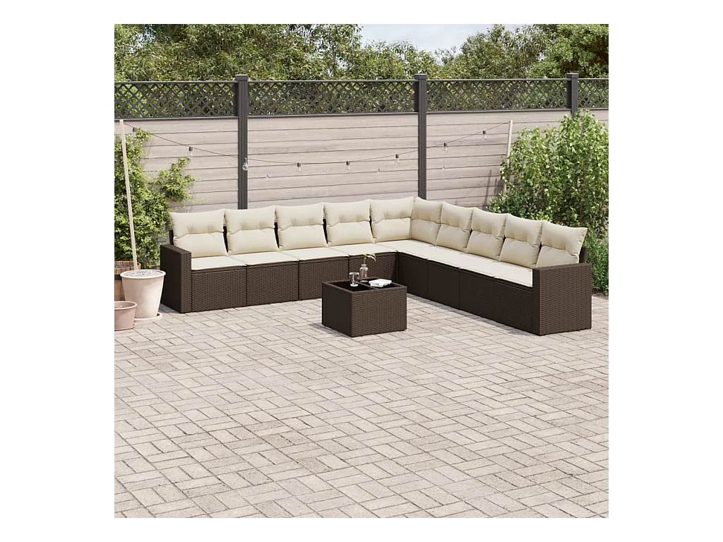 Salon de jardin 10 pcs avec coussins marron résine tressée
