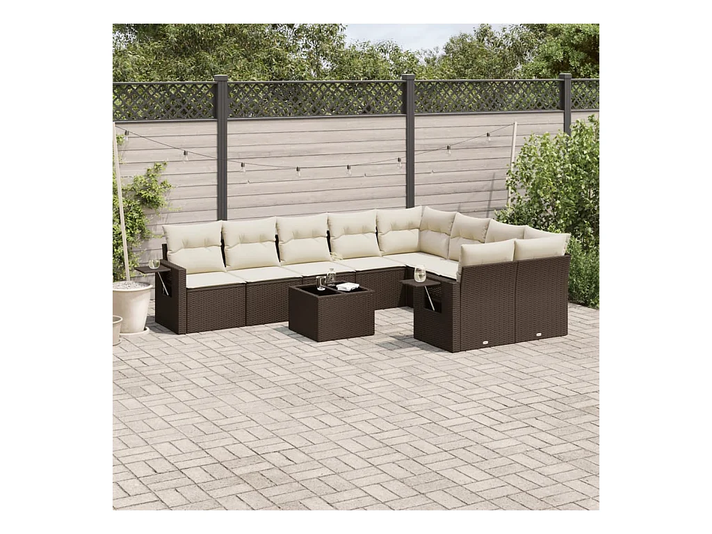 Salon de jardin 10 pcs avec coussins marron résine tressée