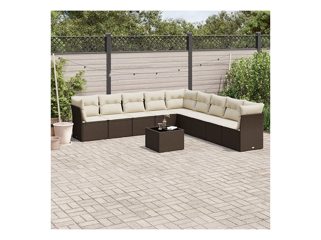 Salon de jardin 10 pcs avec coussins marron résine tressée