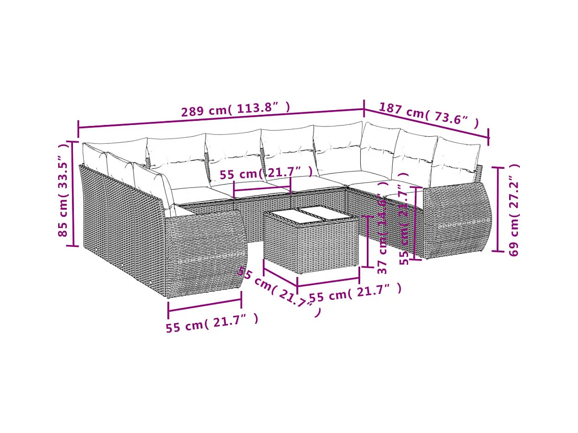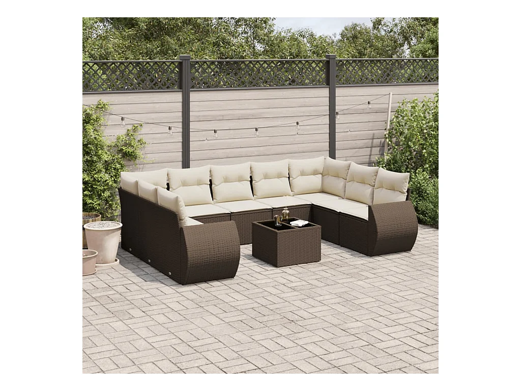Salon de jardin 10 pcs avec coussins marron résine tressée