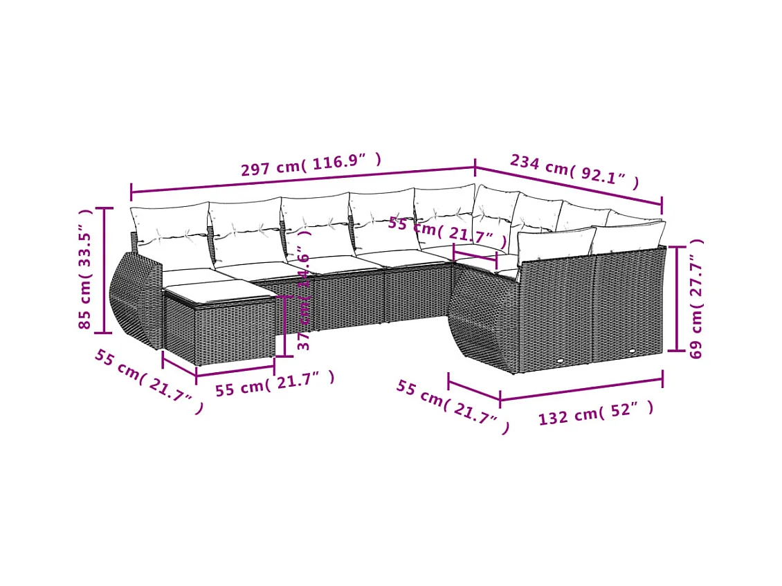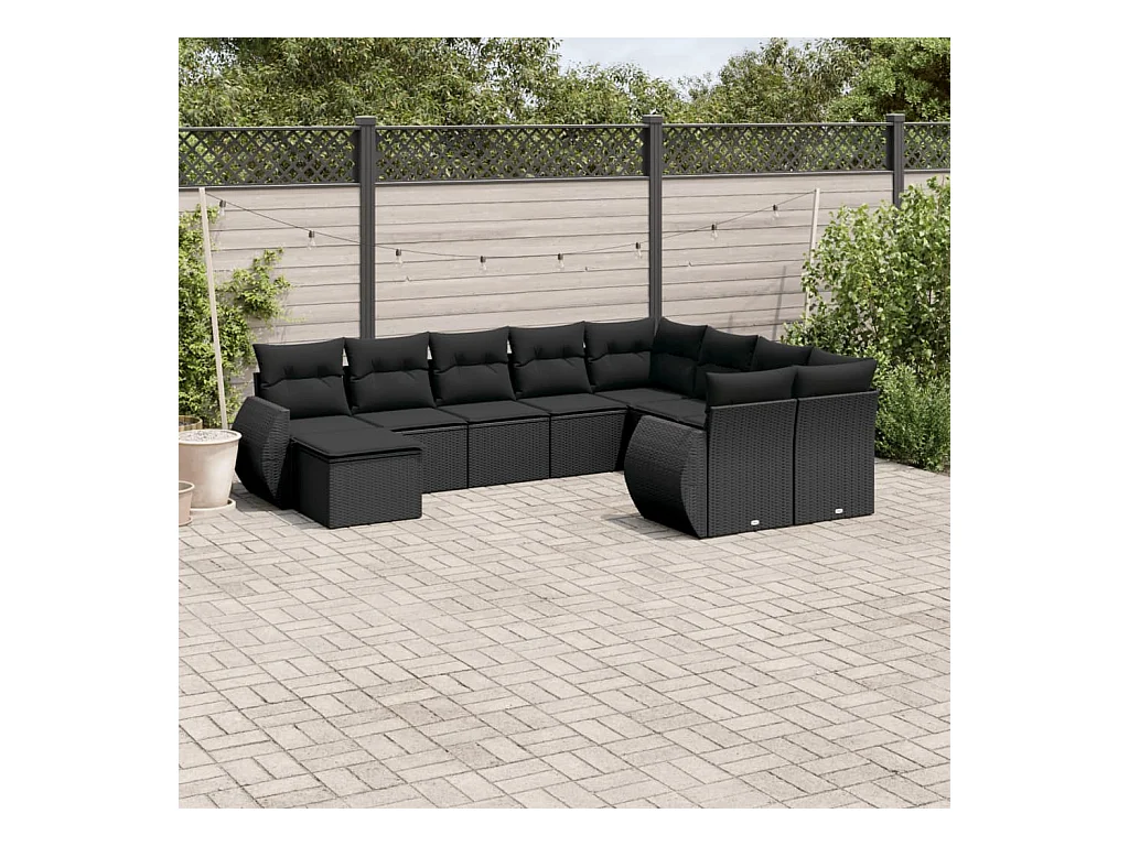 Salon de jardin 10 pcs avec coussins noir résine tressée
