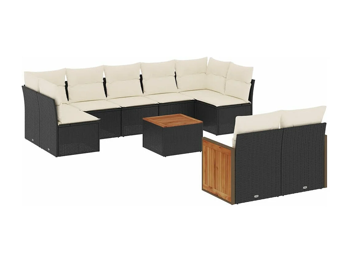 Salon de jardin 10 pcs avec coussins noir résine tressée