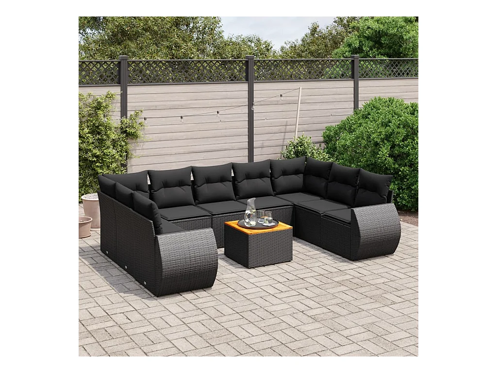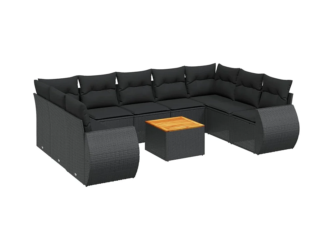 Salon de jardin 10 pcs avec coussins noir résine tressée