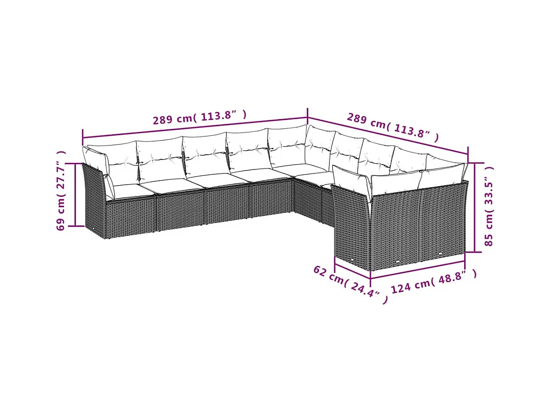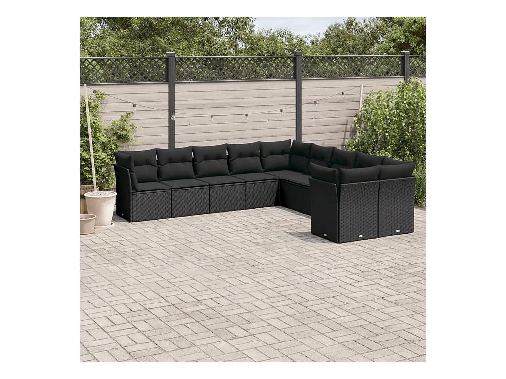 Salon de jardin 10 pcs avec coussins noir résine tressée