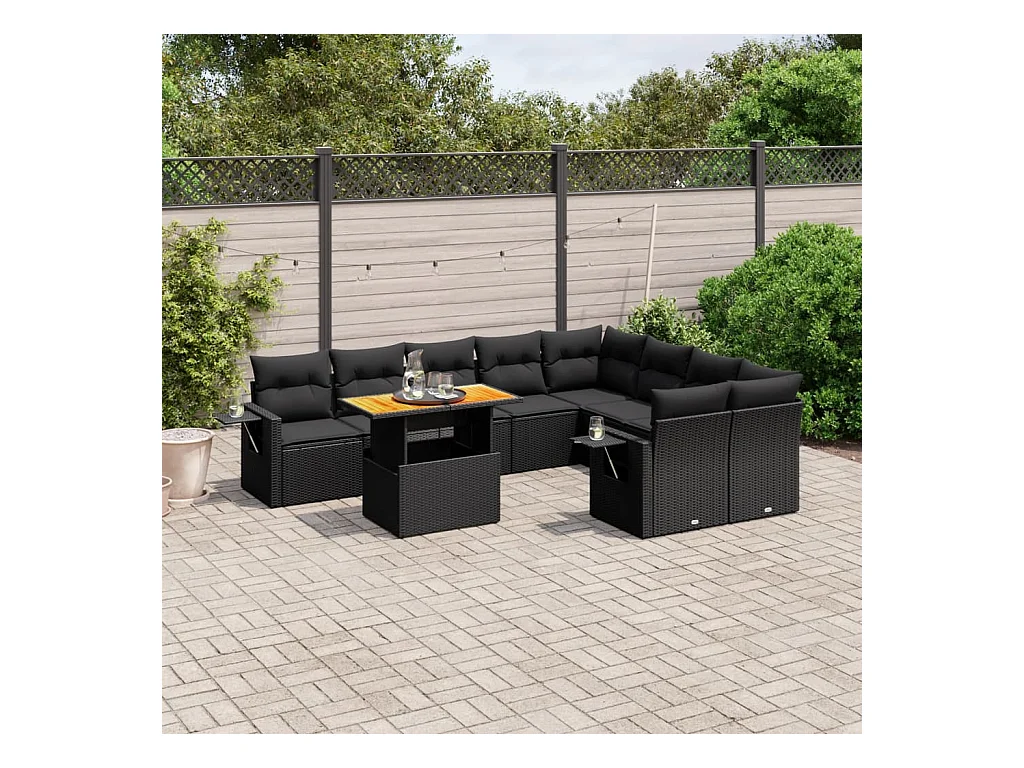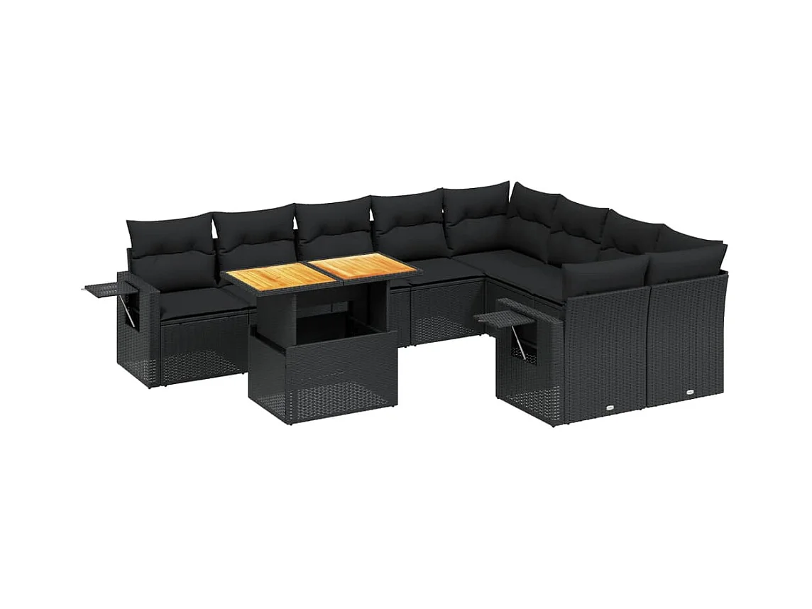 Salon de jardin 10 pcs avec coussins noir résine tressée