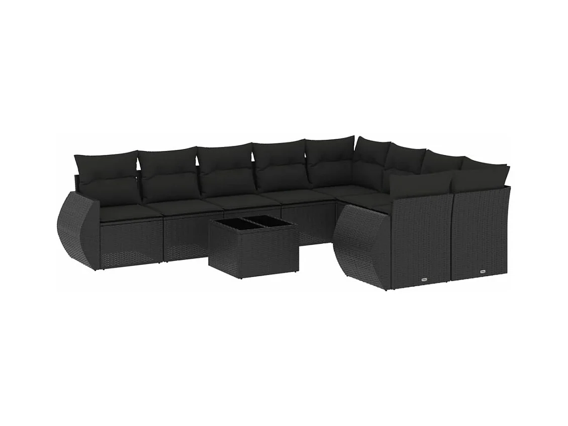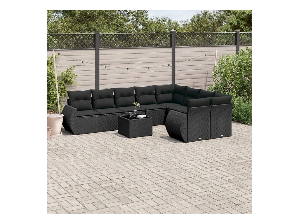Salon de jardin 10 pcs avec coussins noir résine tressée