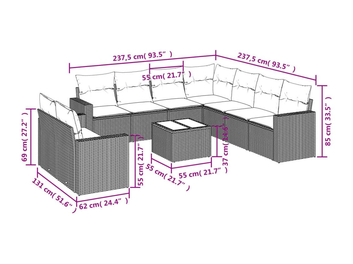 Salon de jardin 10 pcs avec coussins noir résine tressée