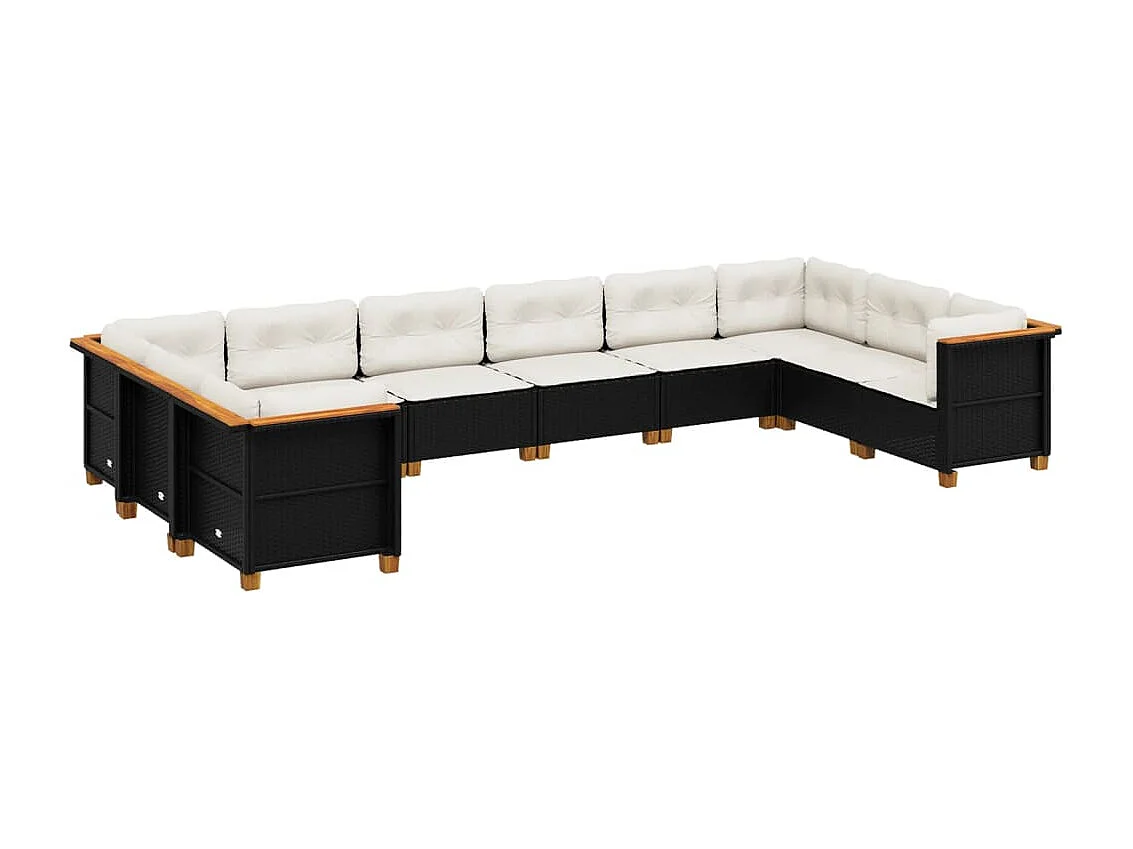 Salon de jardin 10 pcs avec coussins noir résine tressée