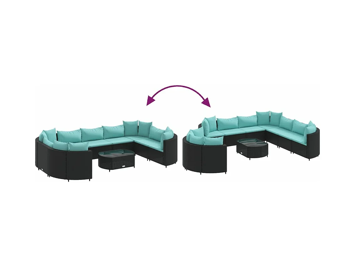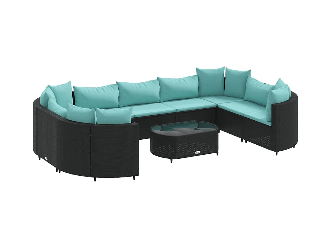 Salon de jardin 10 pcs avec coussins noir résine tressée