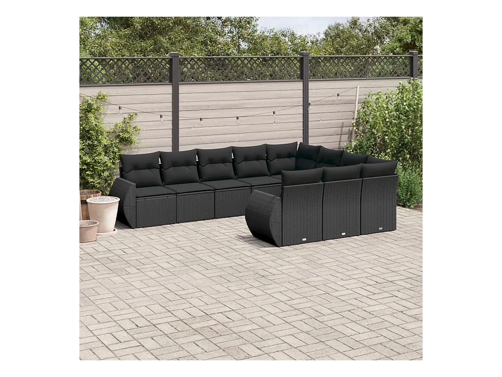 Salon de jardin 10 pcs avec coussins noir résine tressée