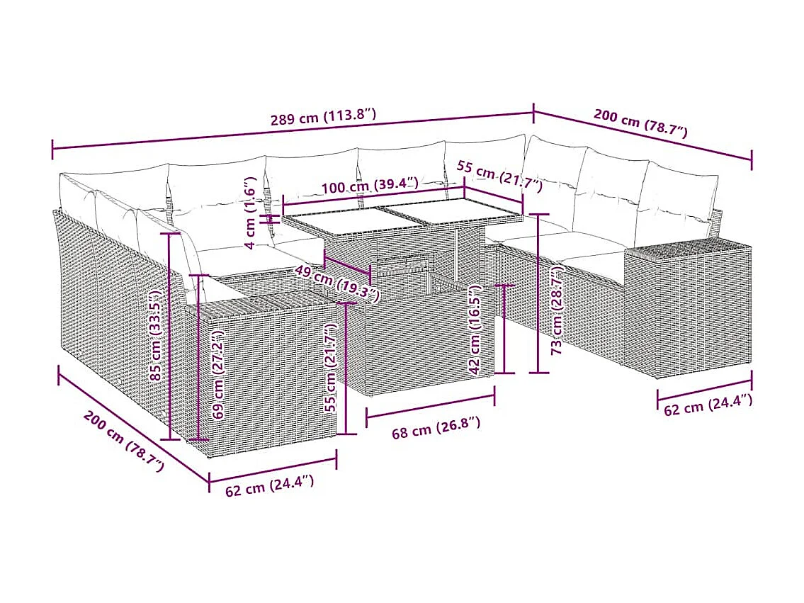 Salon complet de jardin Canapé 2 places et 2 fauteuils