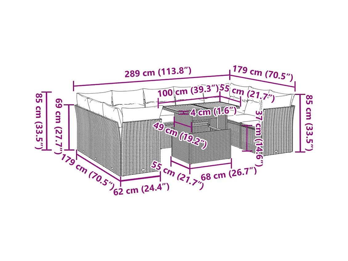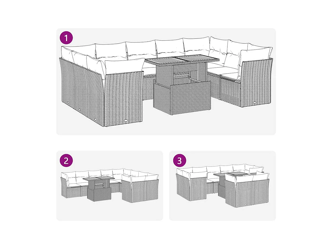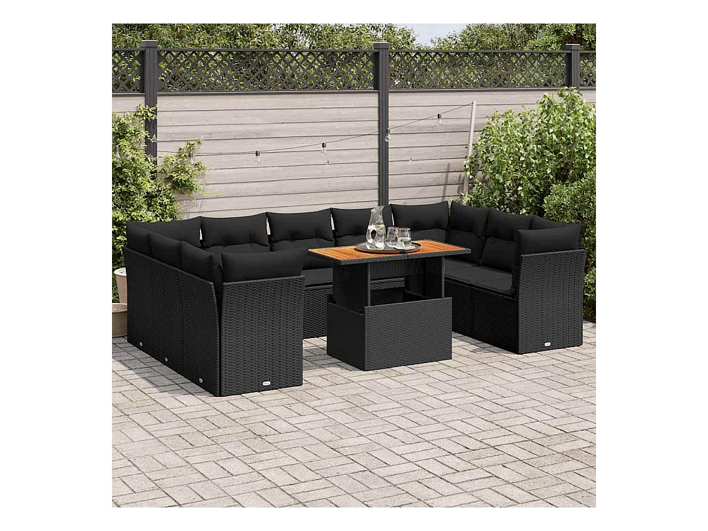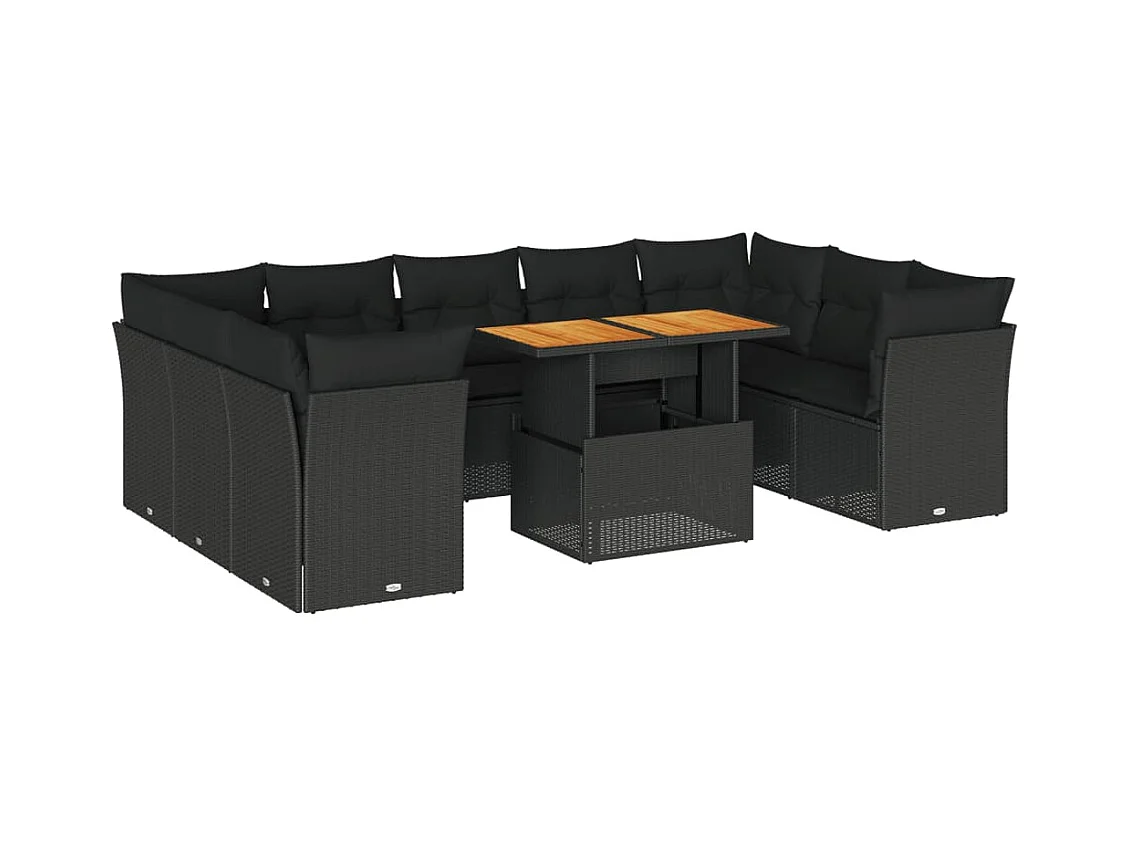 Salon de jardin 10 pcs avec coussins noir résine tressée