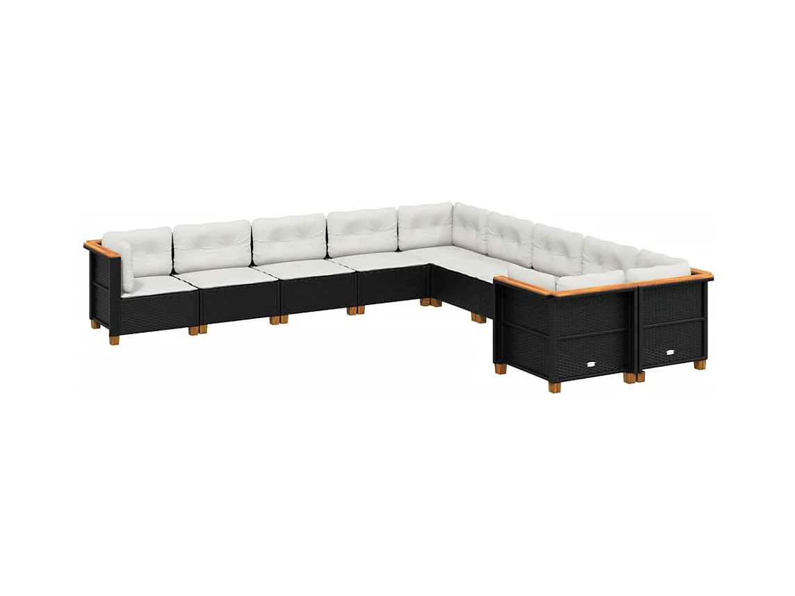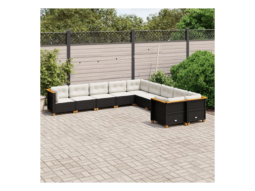 Salon de jardin encastrable 11 pièces et coussin Rotin naturel Noir