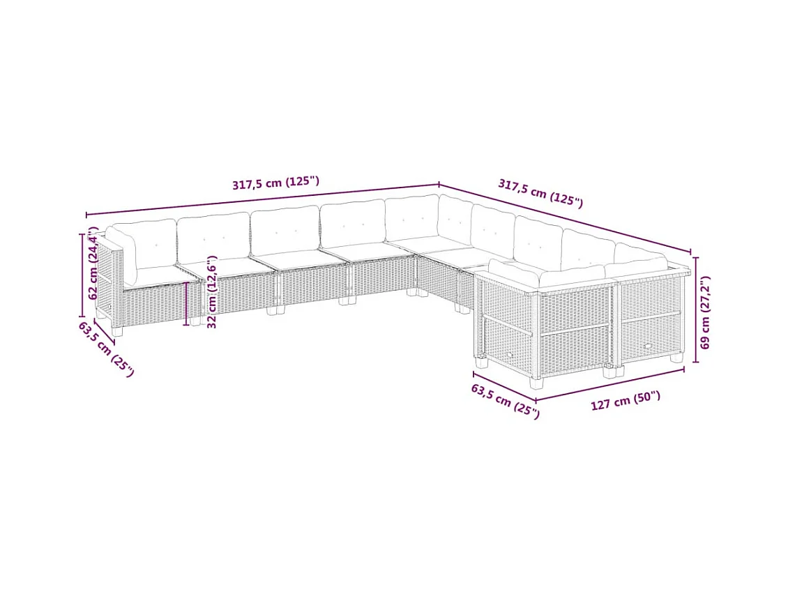Salon de jardin 10 pcs avec coussins noir résine tressée