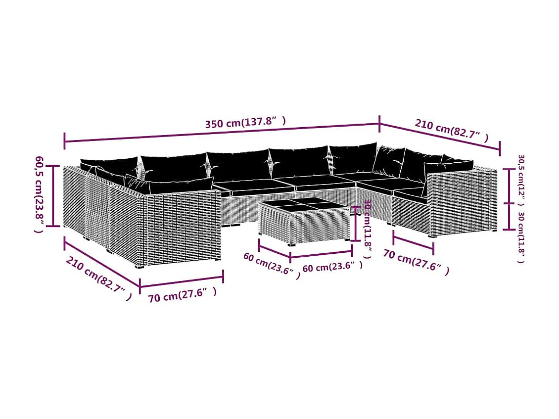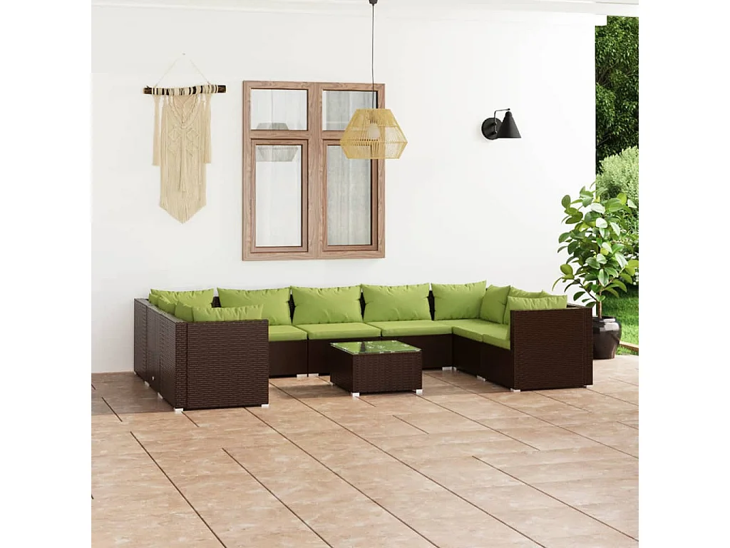 Salon de jardin 10 pcs avec coussins Résine tressée Marron