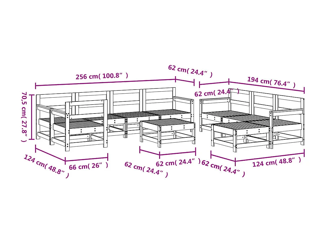 Salon de jardin 10 pcs bois de pin imprégné