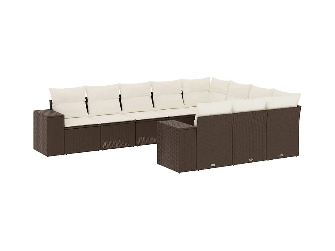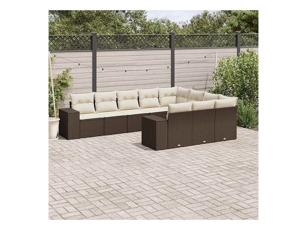 Salon de jardin 10 pièces avec coussins marron résine tressée