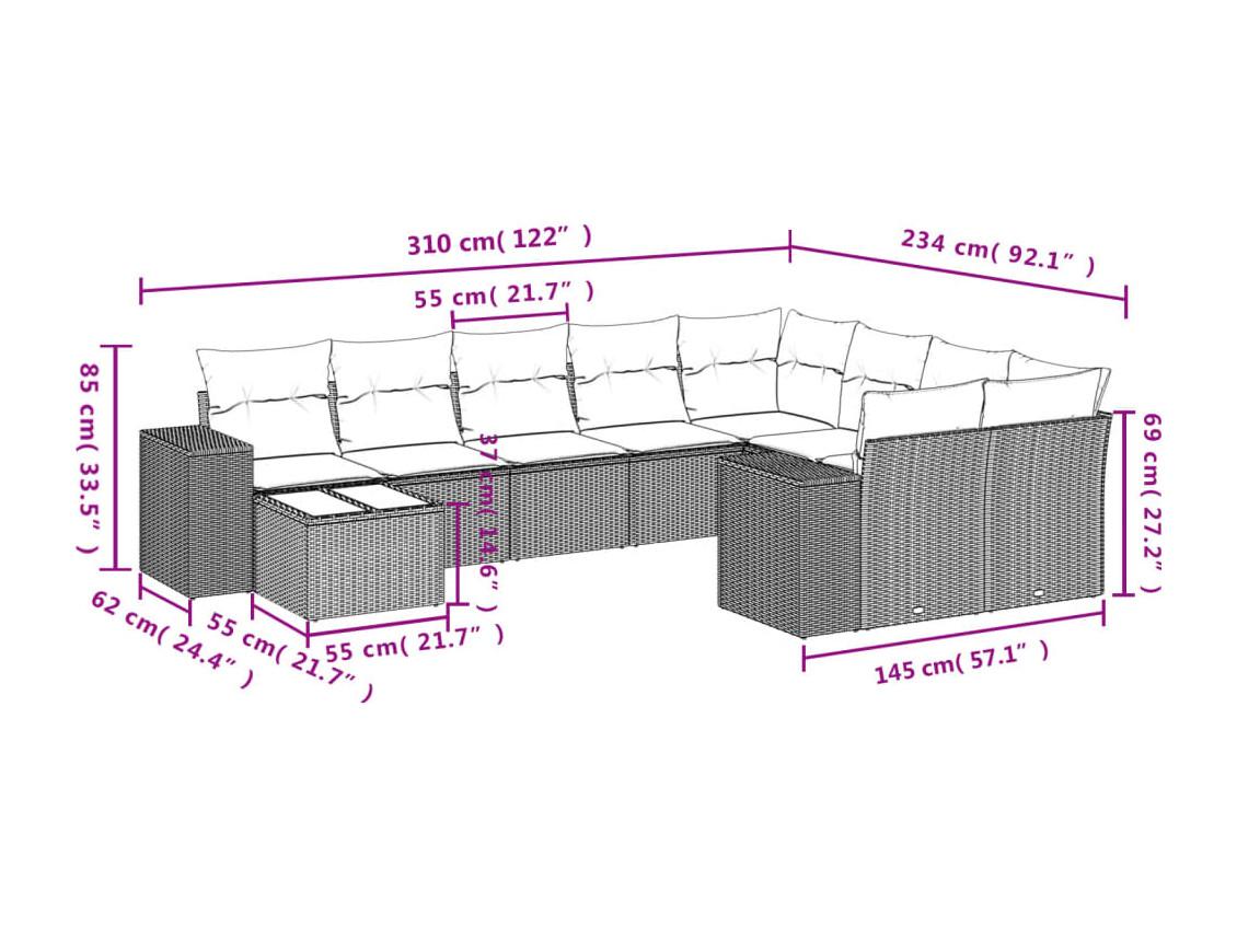 Salon de jardin 10 pièces avec coussins marron résine tressée
