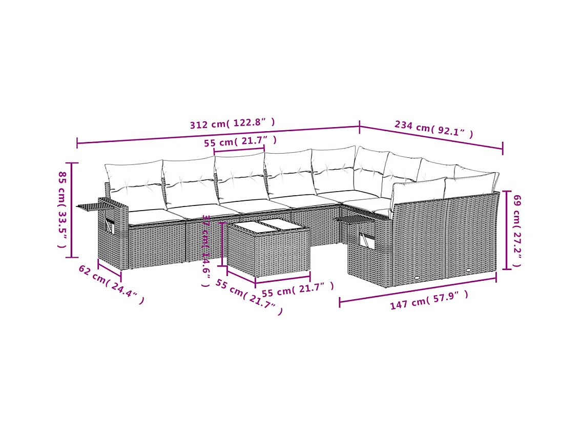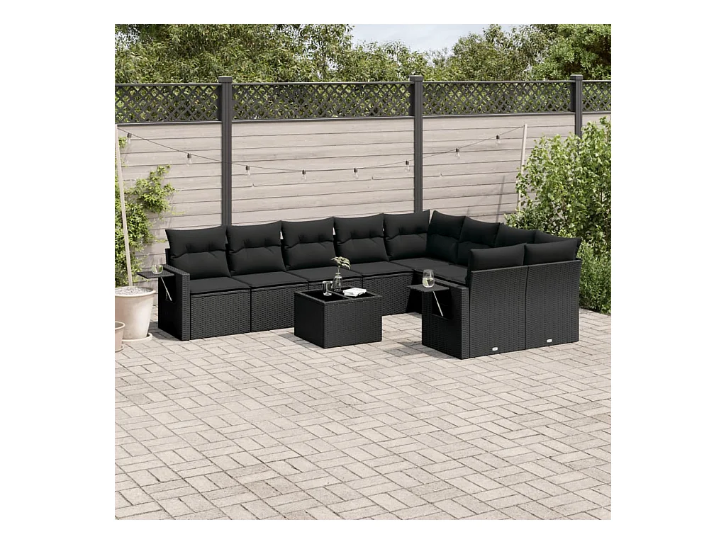 Salon de jardin 10 pièces avec coussins noir résine tressée