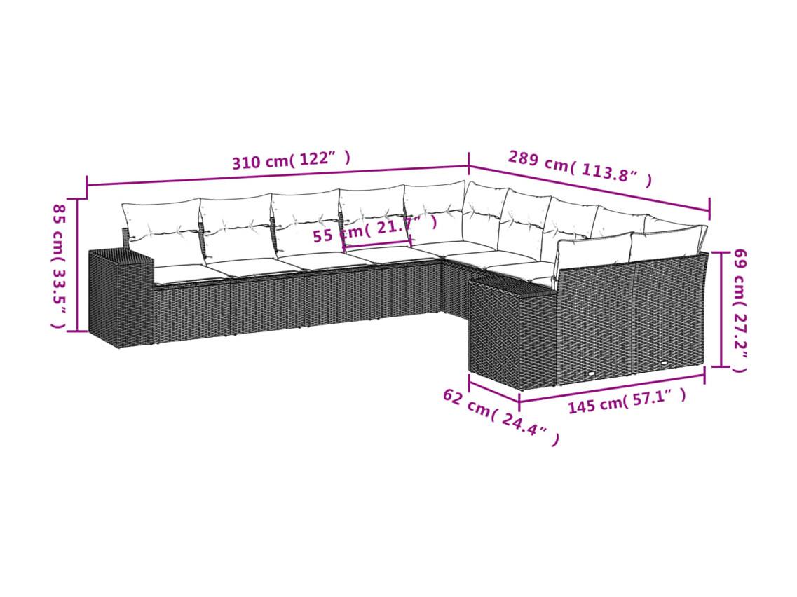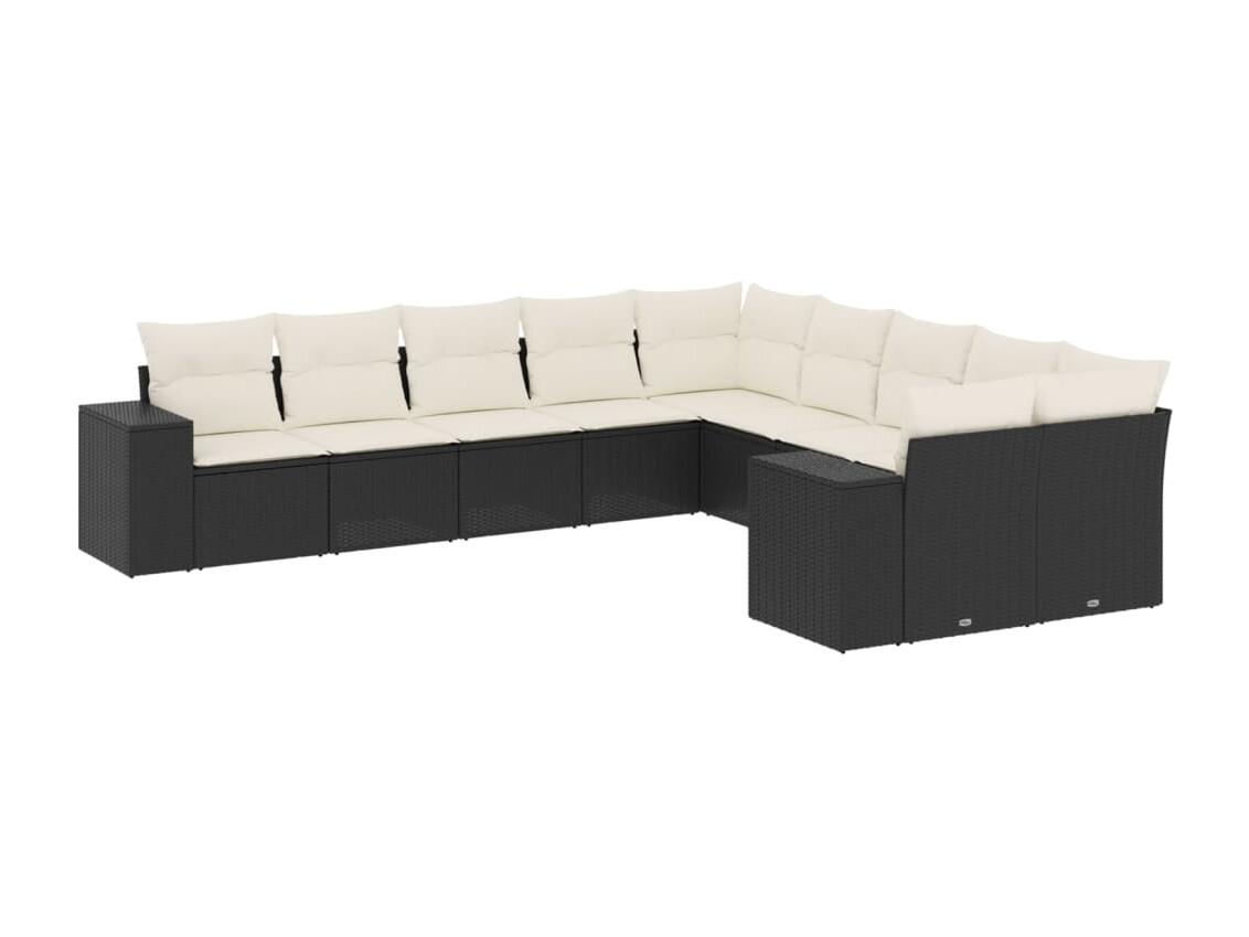 Salon de jardin 10 pièces avec coussins noir résine tressée