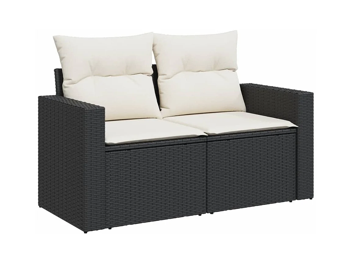 Salon de jardin 10 pièces avec coussins noir résine tressée