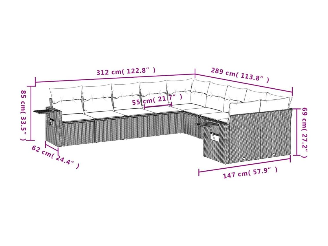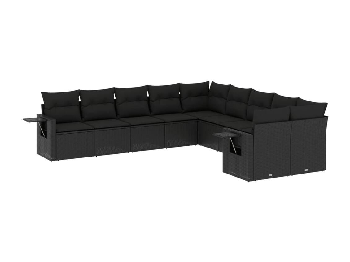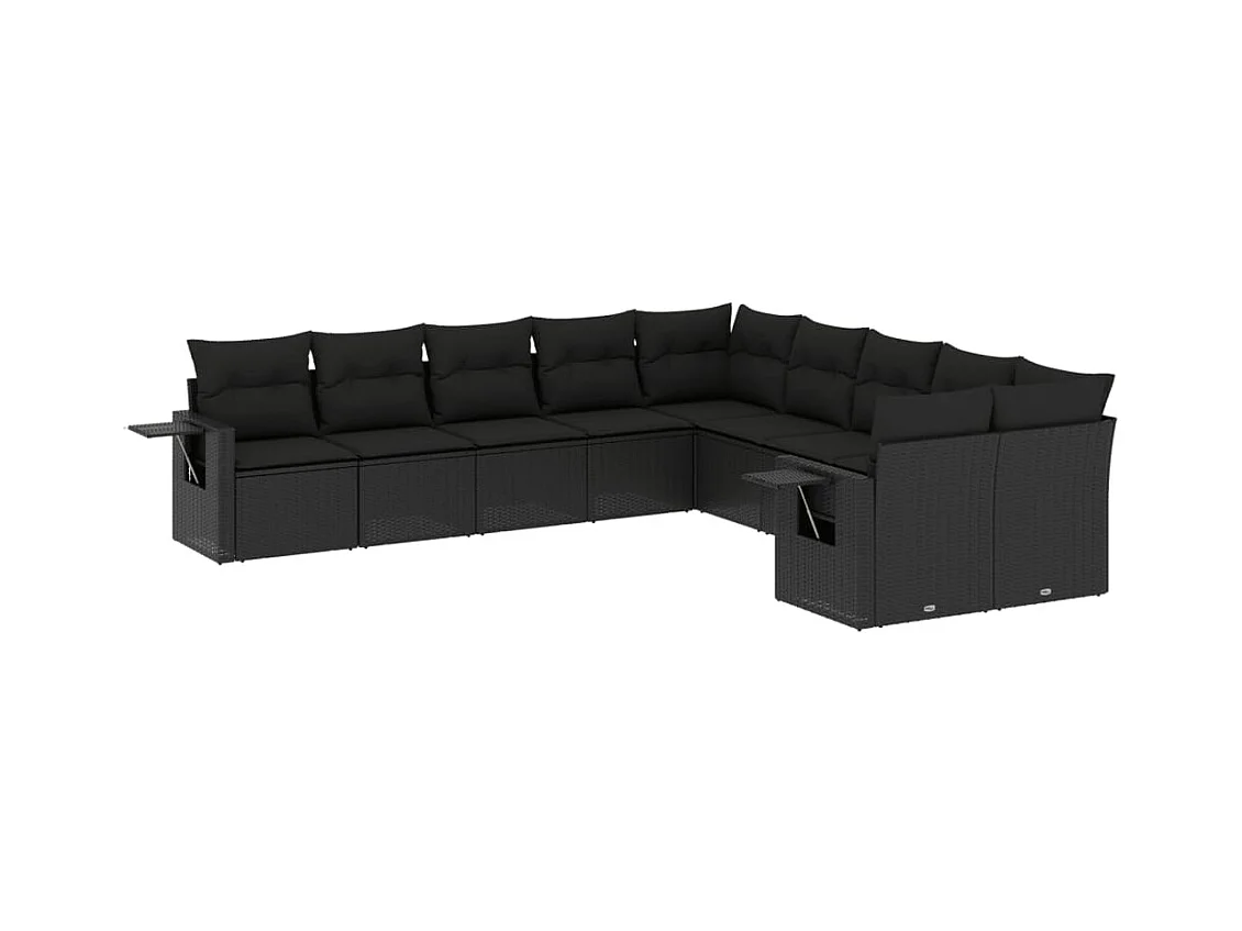 Salon de jardin 10 pièces avec coussins noir résine tressée