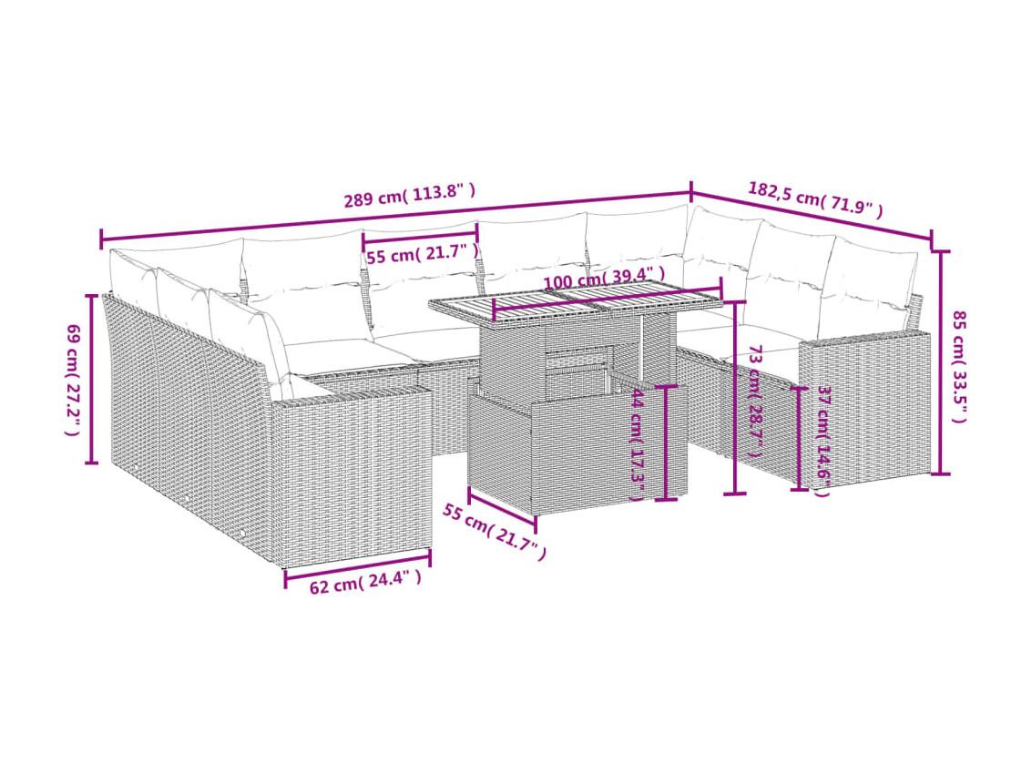 Salon de jardin 10 pièces avec coussins noir résine tressée